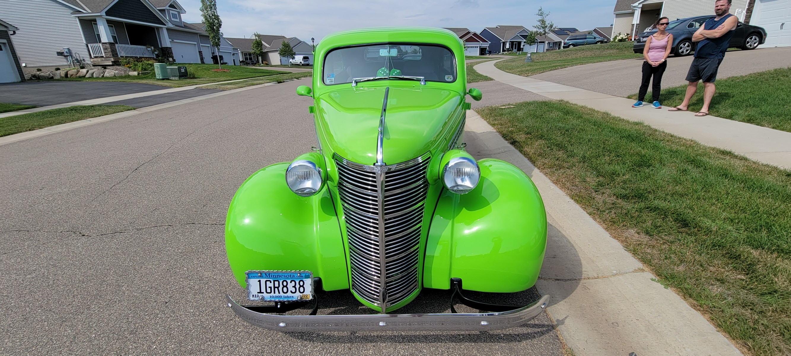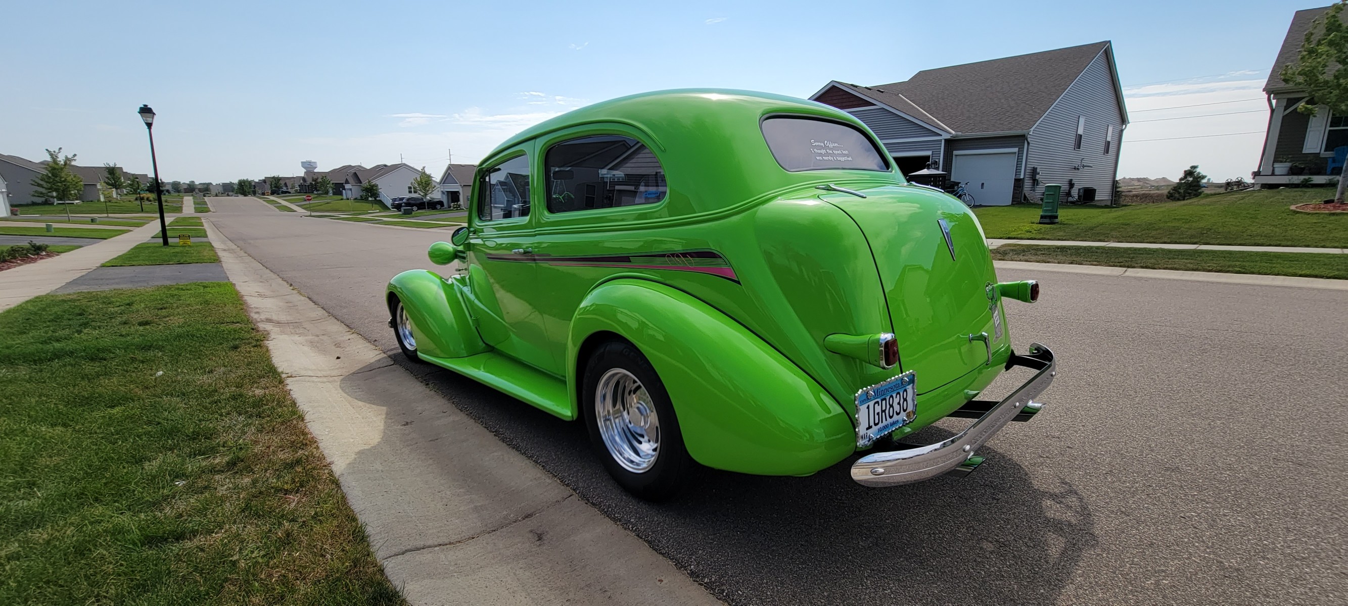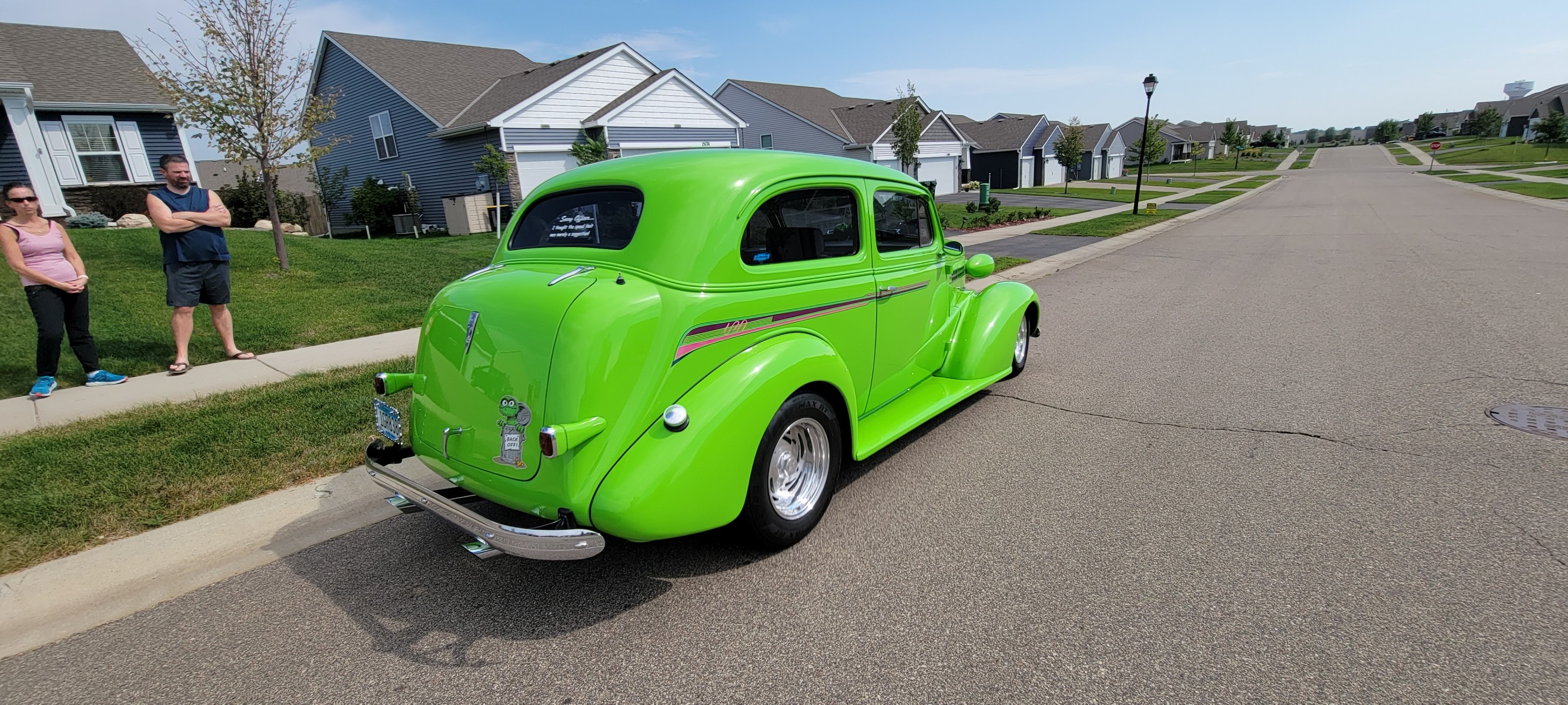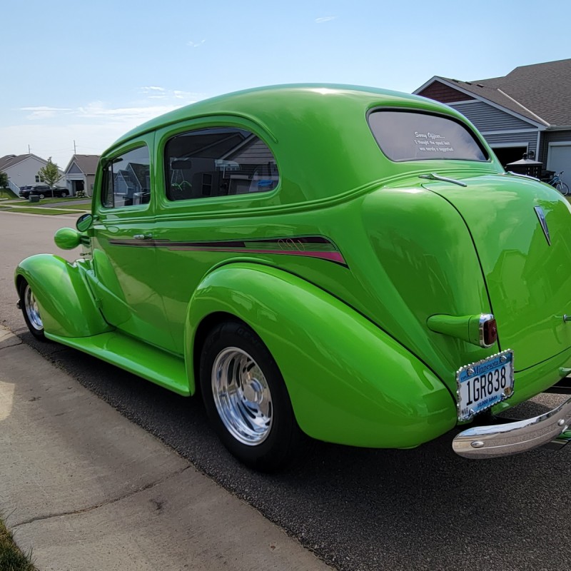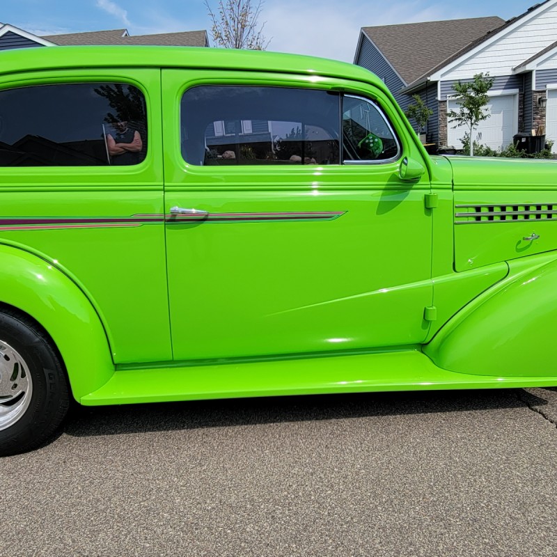 This high end built 1938 Chevrolet Mater Deluxe Street Rod just came in and has all the bells and whistles to get in and cruise anywhere! It has a built 350ci small block Chevy with a Weiend aluminum intake, Eldebrock carburetor, HEI ignition, full serpentine belt system, custom air filter, Th400 3 speed automatic, aluminum radiator with electric fan, power steering, Vintage A/C and Heat system which blows ice cold, power rack and pinion front clip with power front disc brakes. The custom interior is in great condition. It has front bucket seats, overhead console, billet door handles and window cranks, tilt steering column with an aftermarket steering wheel, custom air vents, full Classic Instruments dash gauges which are all in good working condition. The headliner, sun visors dash board, kick panels, etc are in great condition. The trunk is fully boxed and upholstered and in good condition. The vehicles battery is located in the trunk area. The Billet Specialties wheels are in great condition, tires are in good condition, chrome bumpers are also in good condition. There is a working aftermarket cd player located in the center console. This is a beautiful and well built street rod that is turn key and needs nothing but a new home. Some maintenance receipts come with the sale. We have additional photos and video available.
