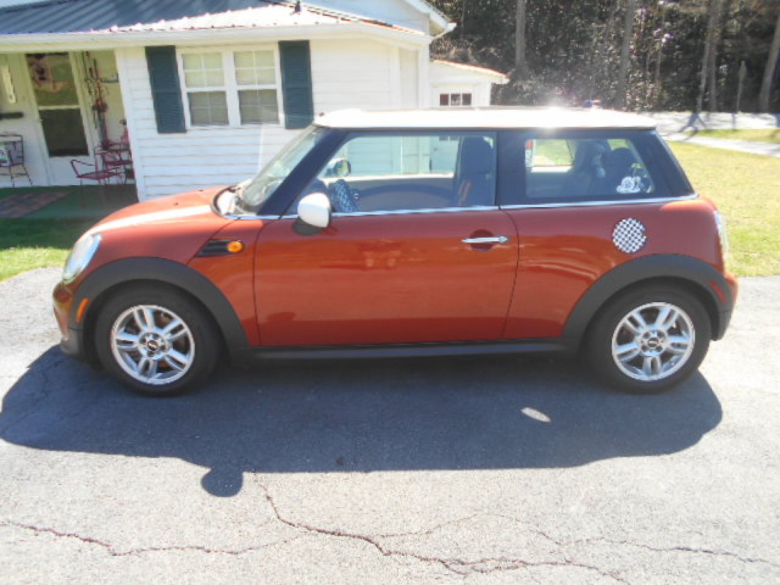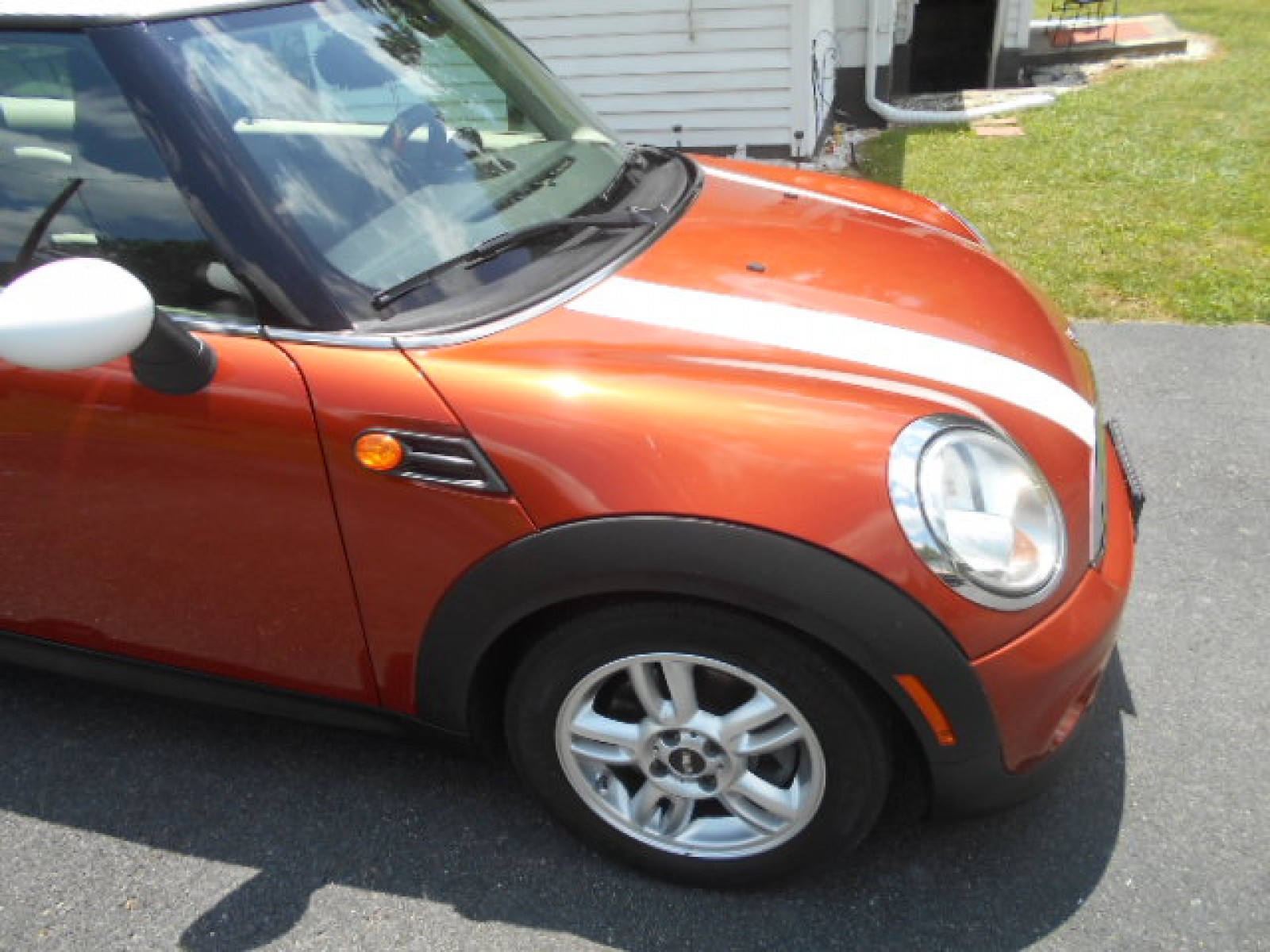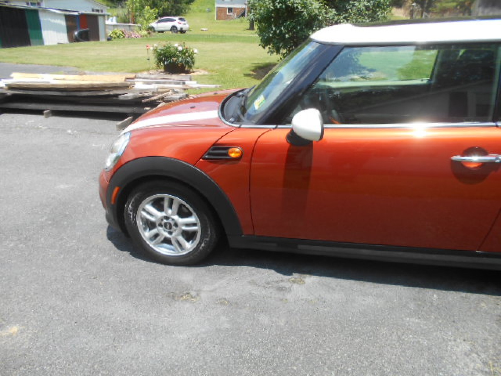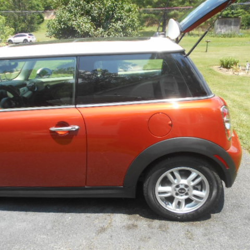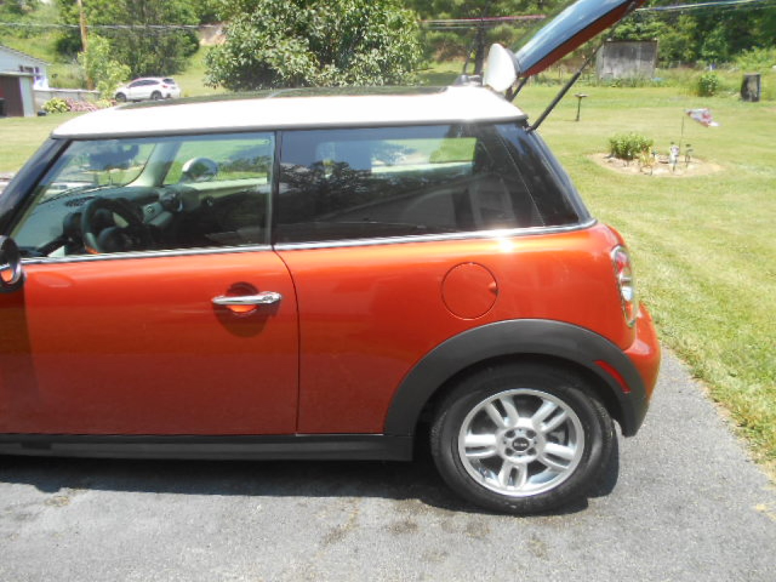 2013 Mini cooper with all options. That a base cooper has. Been serviced well. New tires. second owner, Has 145,000 miles on it. has double sun roof. Minor wear, No holes rips or tears anywhere in the car. Great inside. Out side paint is good and shiny. Has different color changing lighting on the inside. Has Sirus Xm radio 6 speakers, Great sound. The color is a rear Fiesta Orange with a white top and white adjustible mirrors. And wide white racing stripes on the hood. Sports mode or regular transmission. Leather seats great interior. Seats lay down to haul larger things. Has a good cargo place for many items. Has spare tire and changing tools.