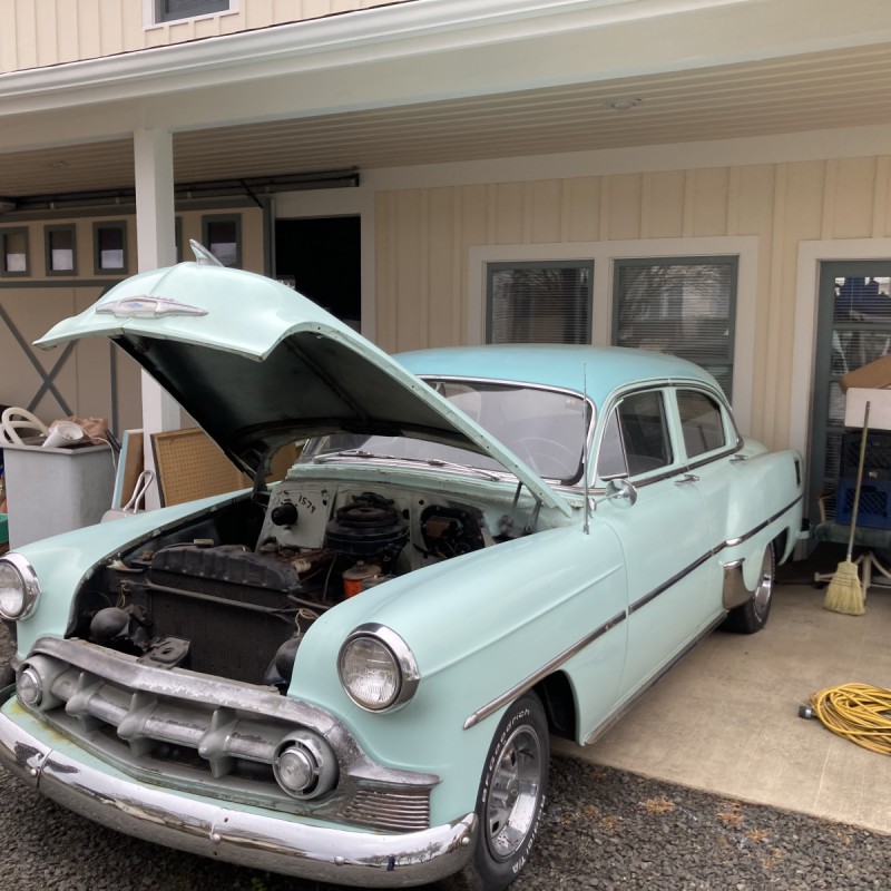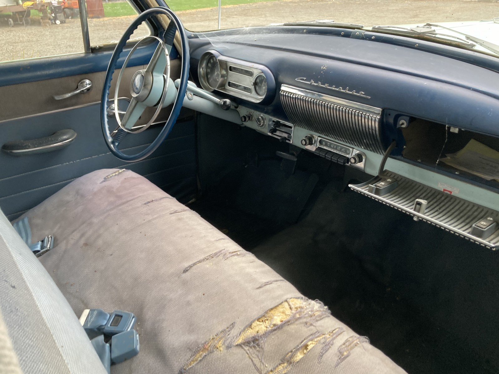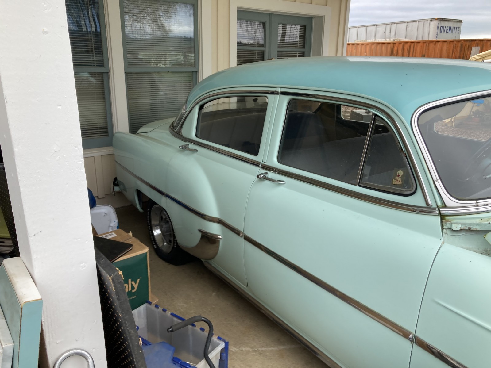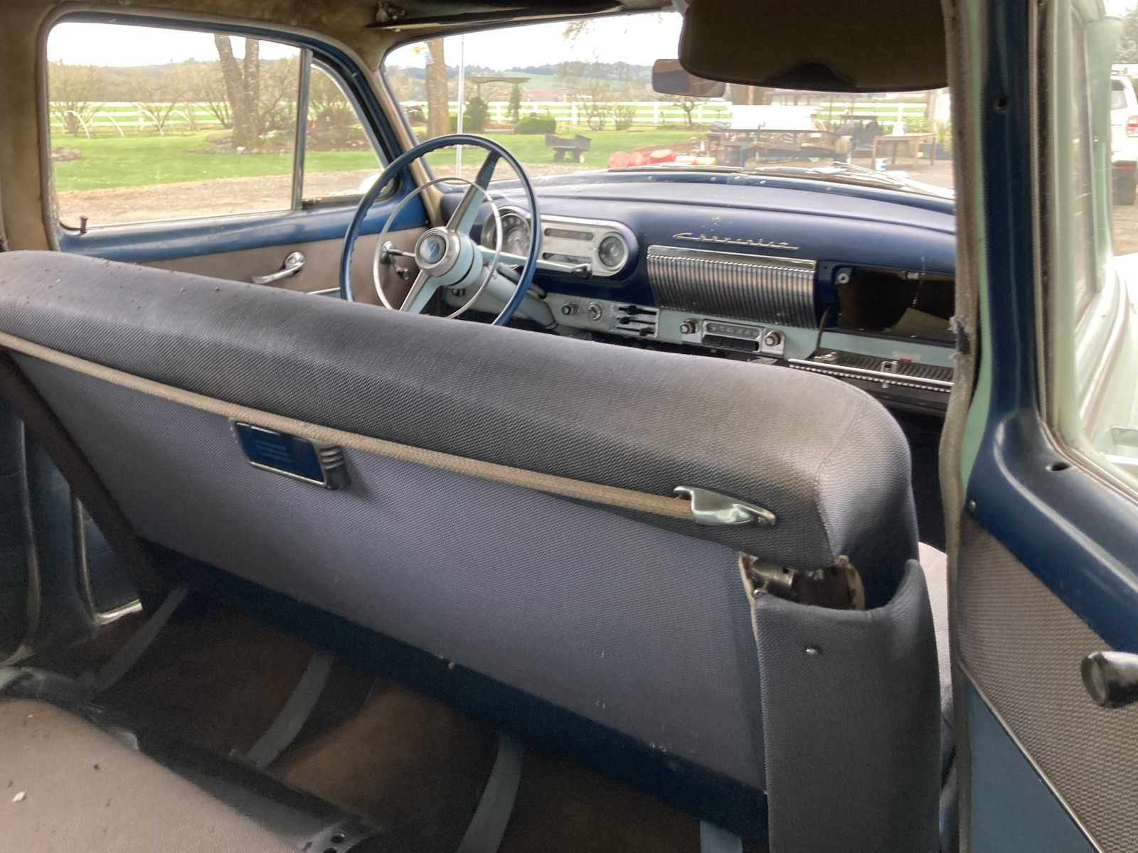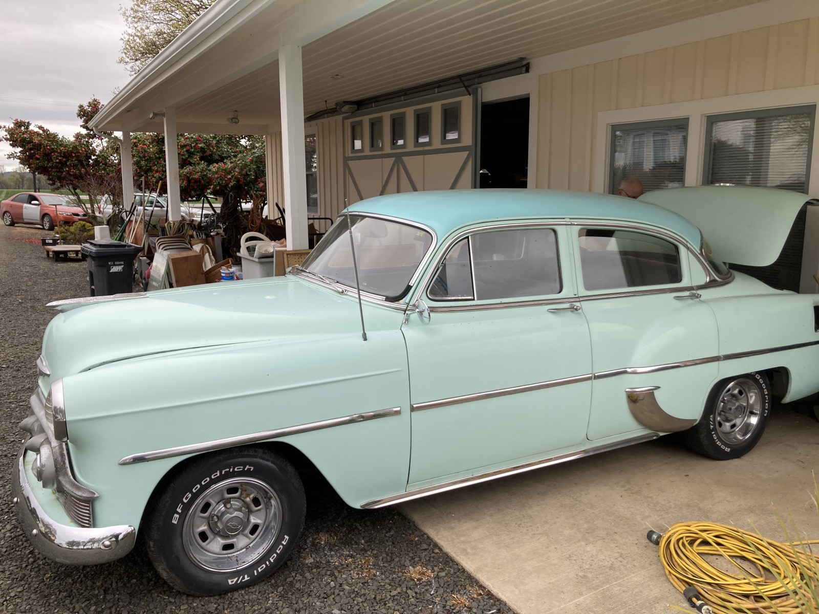 1953 Chevrolet. 5 Window. 5 Passenger. 4 Door Sedan. 235 CIR, Sgl. Bbl. In-line 6 Cyl (Stove Bolt)……2 Speed Powerglide (Slip~N~Slide) Automatic Transmission. 54,522 Original miles. Except for wheels and rubber this vehicle is unadulterated, unaltered, stock and original right down to the AM radio. All doors locks and windows function as designed. Wipers, lights / front and rear, controls, heater, defogger, ventilation, gauges and radio function as designed. Car starts, runs, drives and stops. Has been either garaged covered or parked under an over hang the majority of its days.
