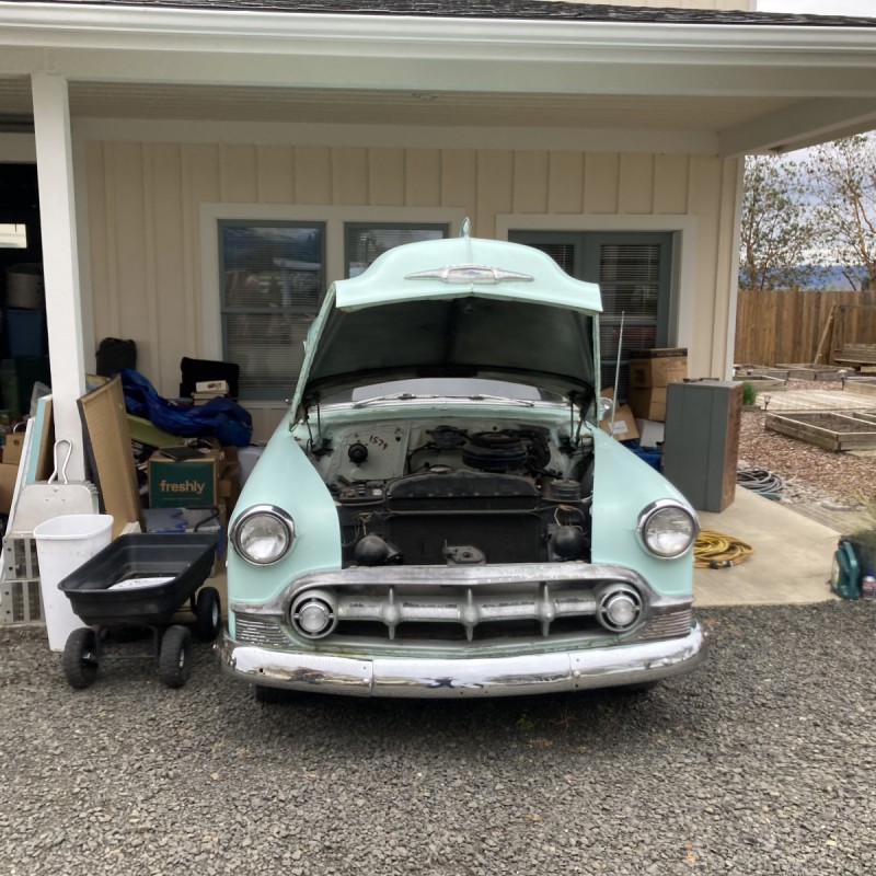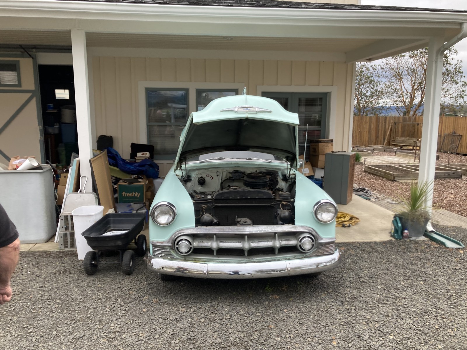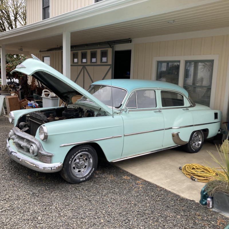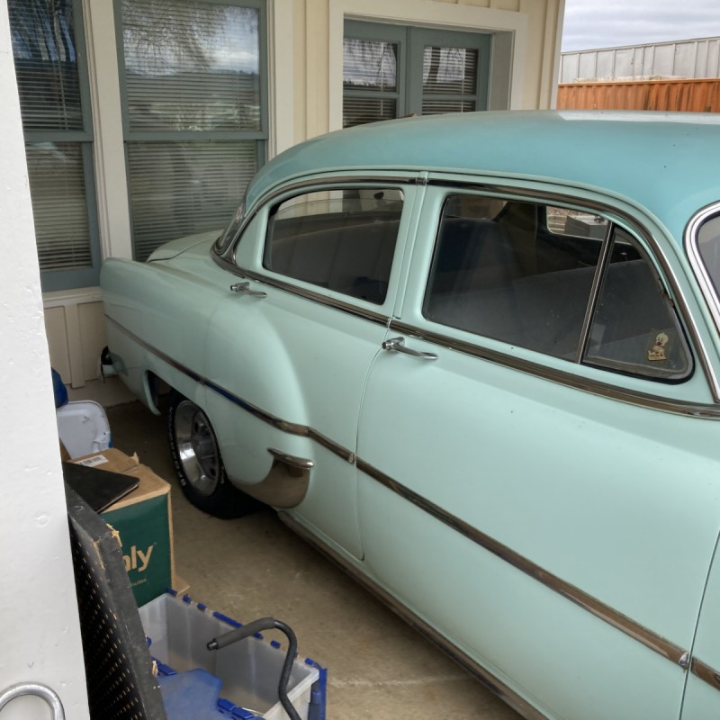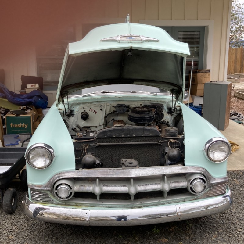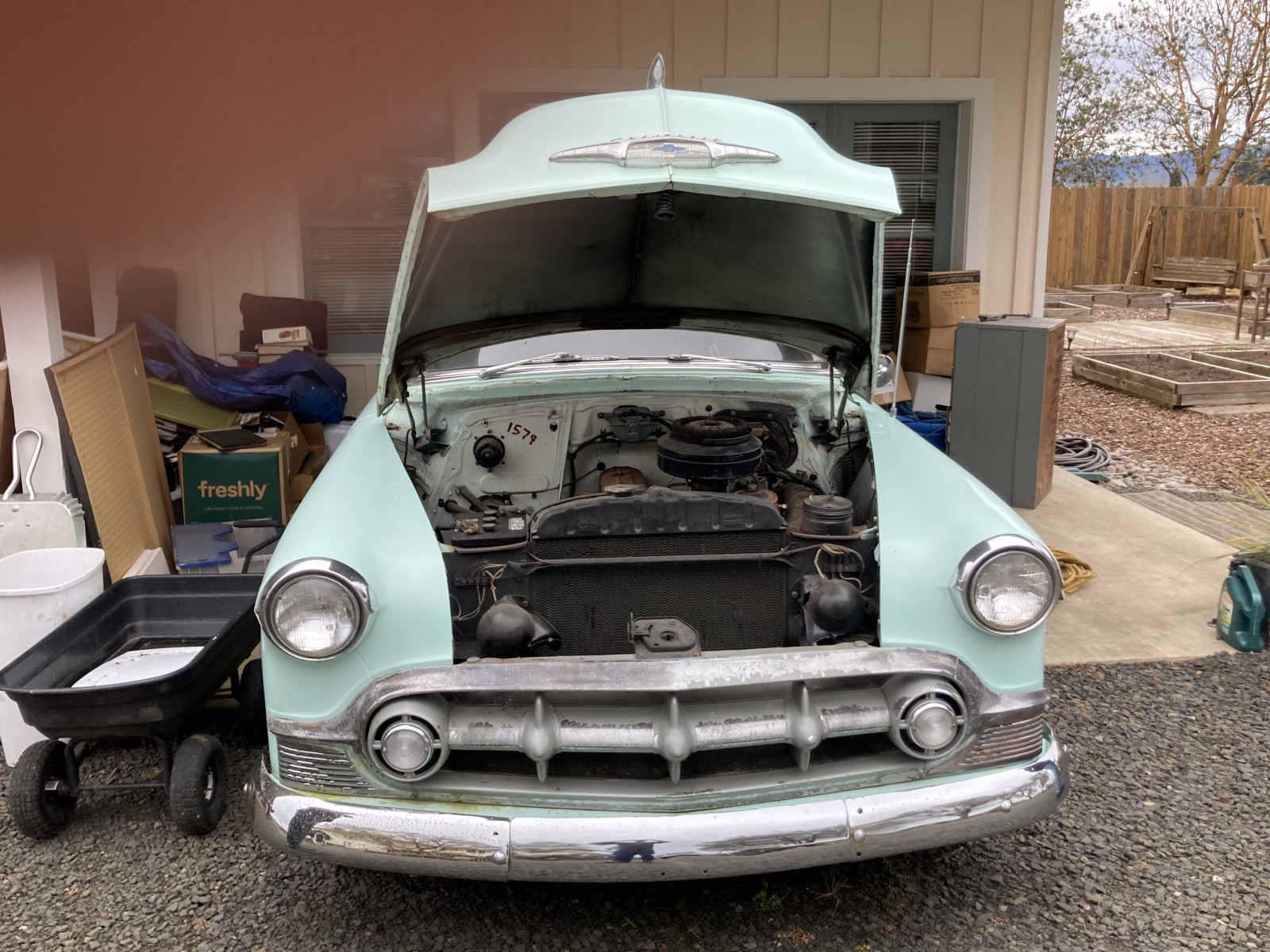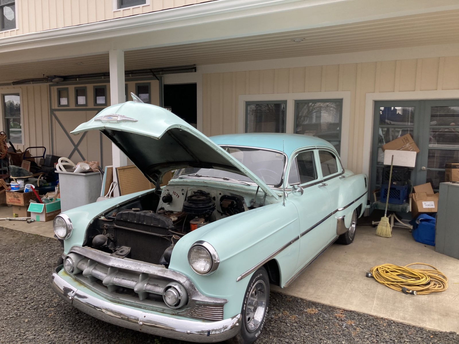 1953 Chevrolet. 5 Window. 5 Passenger. 4 Door Sedan. 235 CIR, Sgl. Bbl. In-line 6 Cyl (Stove Bolt)……2 Speed Powerglide (Slip~N~Slide) Automatic Transmission. 54,522 Original miles. Except for wheels and rubber this vehicle is unadulterated, unaltered, stock and original right down to the AM radio. All doors locks and windows function as designed. Wipers, lights / front and rear, controls, heater, defogger, ventilation, gauges and radio function as designed. Car starts, runs, drives and stops. Has been either garaged covered or parked under an over hang the majority of its days.