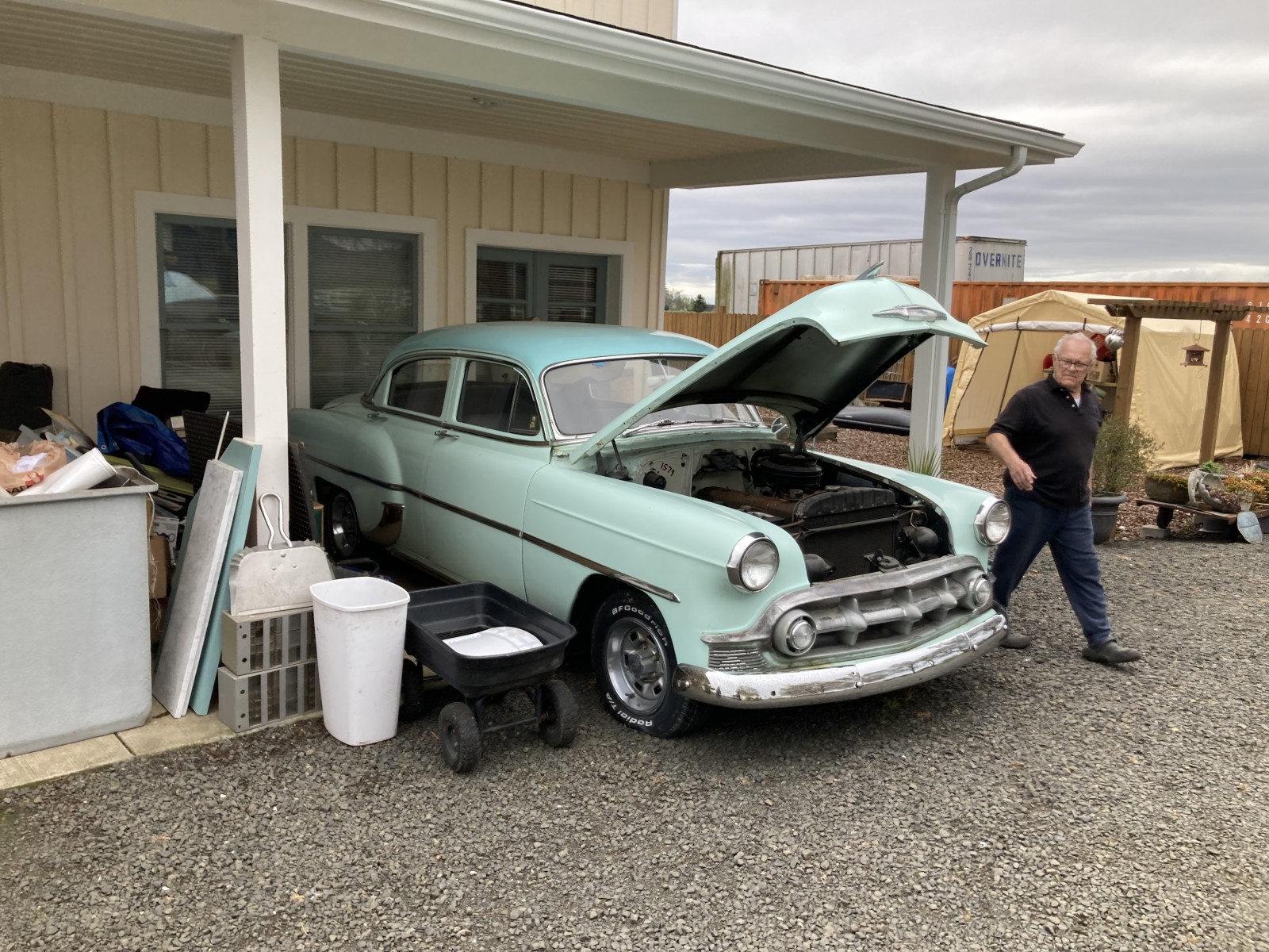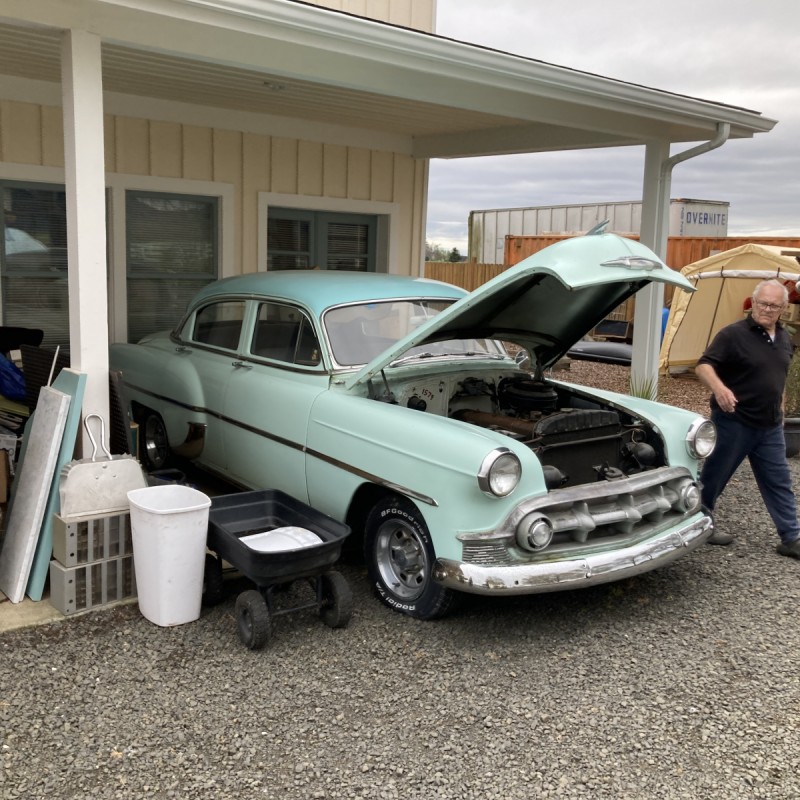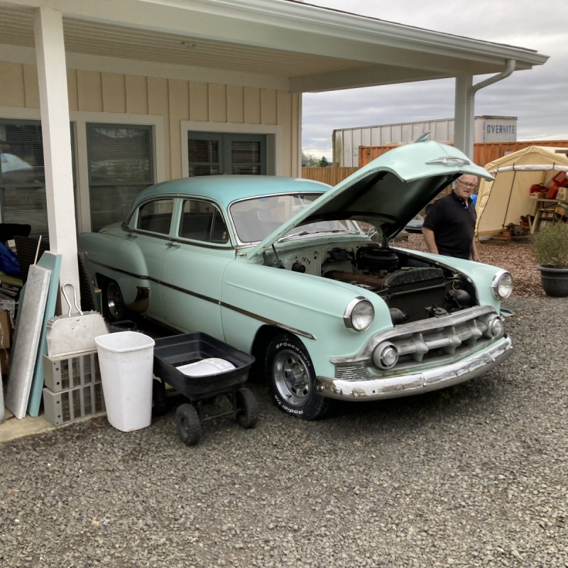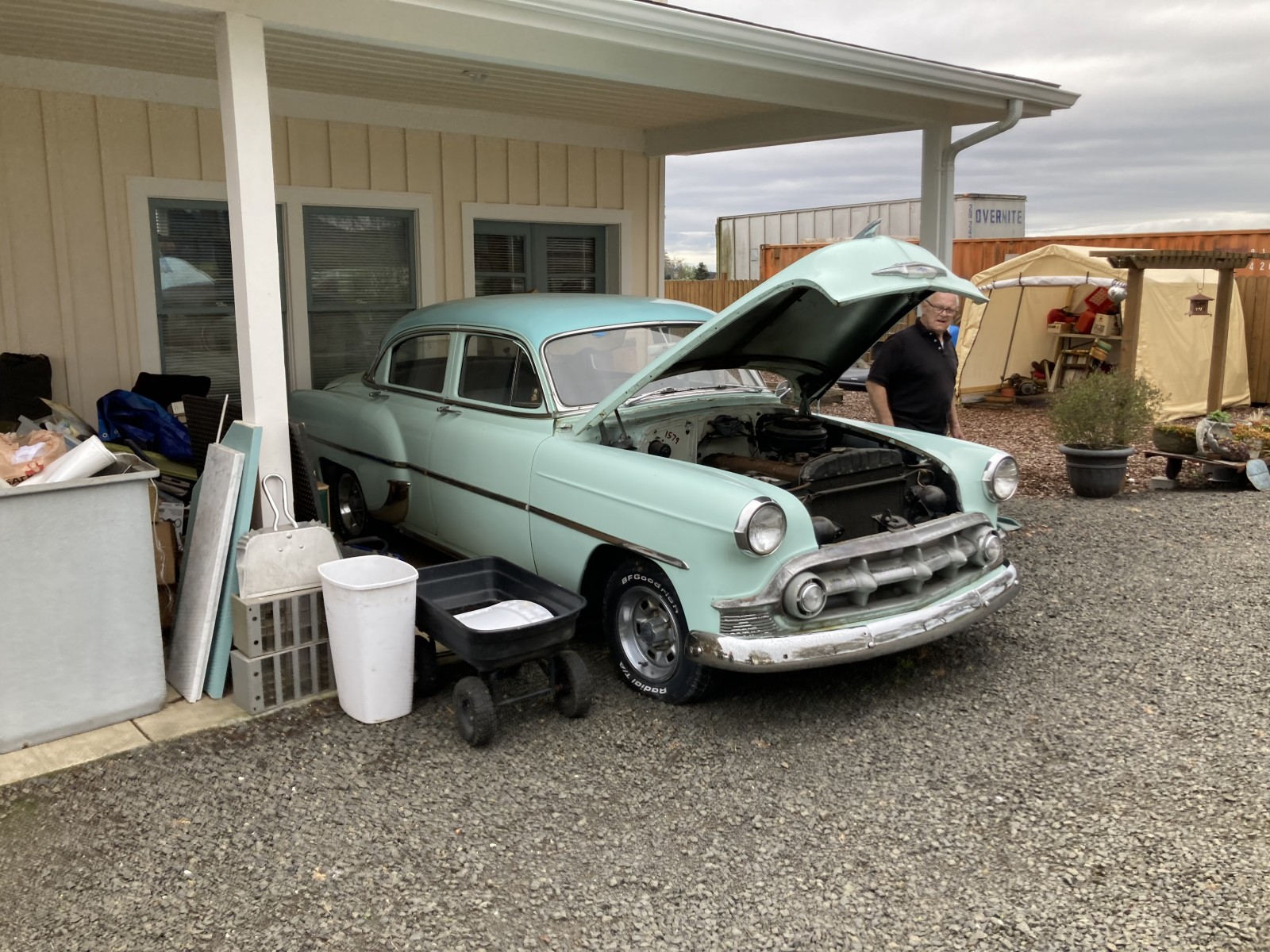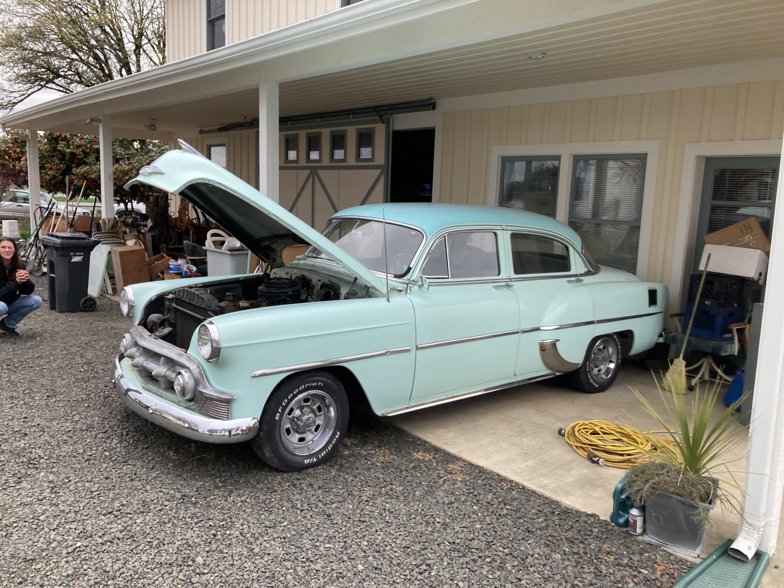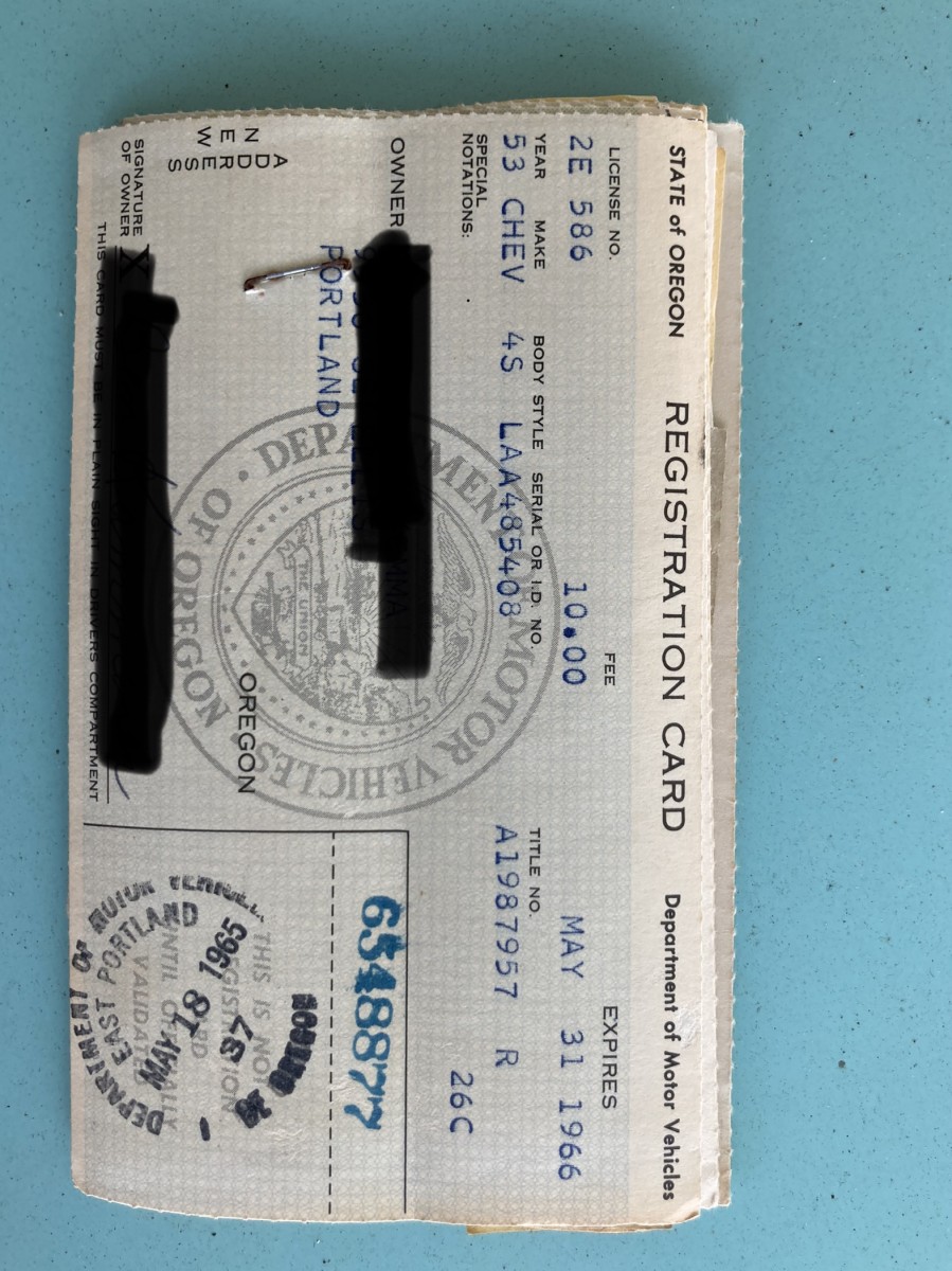 1953 Chevrolet. 5 Window. 5 Passenger. 4 Door Sedan. 235 CIR, Sgl. Bbl. In-line 6 Cyl (Stove Bolt)……2 Speed Powerglide (Slip~N~Slide) Automatic Transmission. 54,522 Original miles. Except for wheels and rubber this vehicle is unadulterated, unaltered, stock and original right down to the AM radio. All doors locks and windows function as designed. Wipers, lights / front and rear, controls, heater, defogger, ventilation, gauges and radio function as designed. Car starts, runs, drives and stops. Has been either garaged covered or parked under an over hang the majority of its days.