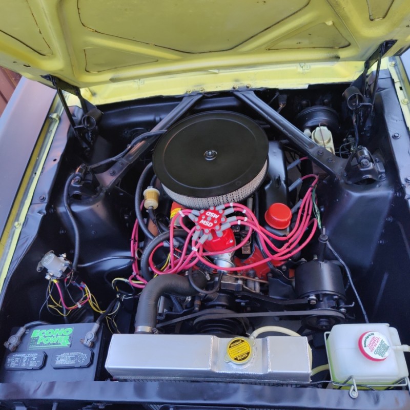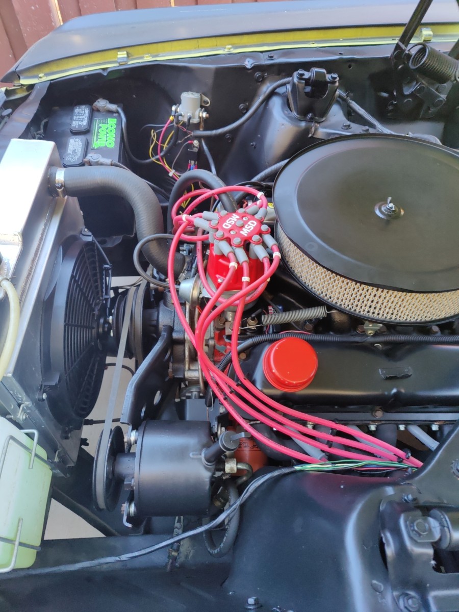 289, engine,trans rebuilt in a shop.new floors,seats in front,new radiator/fan,4barrel carb,MSD parts,dual flowmaster exhaust.new brake system/booster.pretty much all done.ready for new paint.