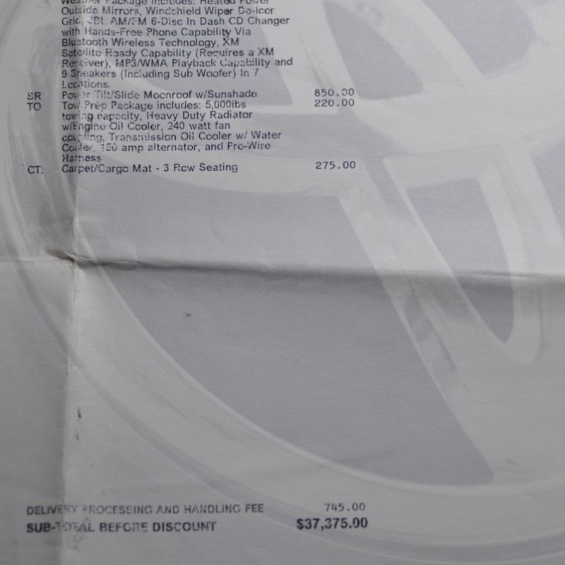 Immaculate car and all working (seven passenger) drove the trip beautifully. Great family car. I have RAV4, but cannot pull boat with it which was reason for purchase (6 cylinder) as well as getting on the road quickly. Beautiful car but not what I need.