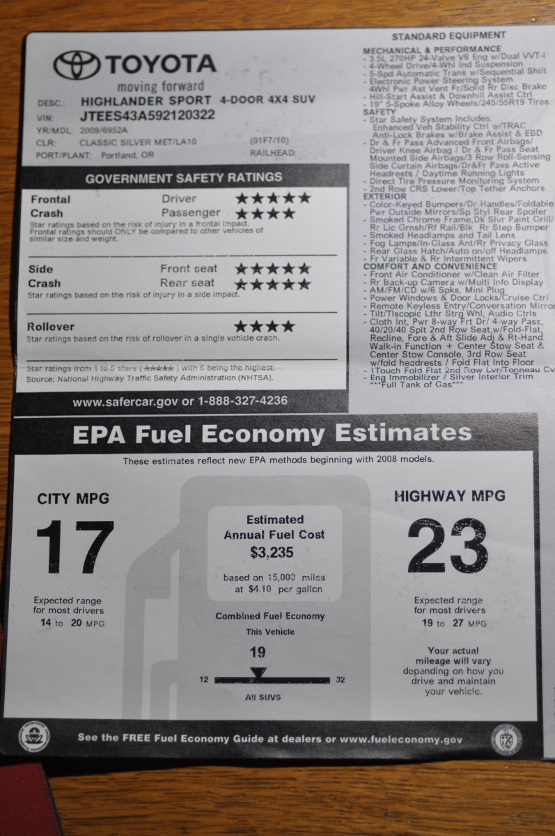 SPORT!! MOONROOF!! 3rd ROW!! REMOTE KEYLESS ENTRY!! 2009 TOYOTA HIGHLANDER SPORT!! CLASSIC SILVER METALLIC EXTERIOR ON ASH HEATED LEATHER INTERTERIOR!! ALL WHEEL DRIVE!! 3.5L V6 ENGINE UNDER THE HOOD!! 5-SPEED AUTOMATIC TRANSMISSION!! 23 MPG HIGHWAY!! Second Owner VEHICLE!! NO ACCIDENTS!! HEATED FRONT SEATS, 3rd ROW, DUAL ZONE CLIMATE CONTROL, BLUETOOTH, JBL Sound System MOONROOF, 19 ALLOY WHEELS, BACK UP CAMERA, AM/FM/CD PLAYER, REMOTE KEYLESS ENTRY