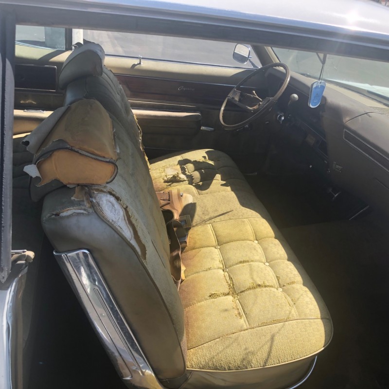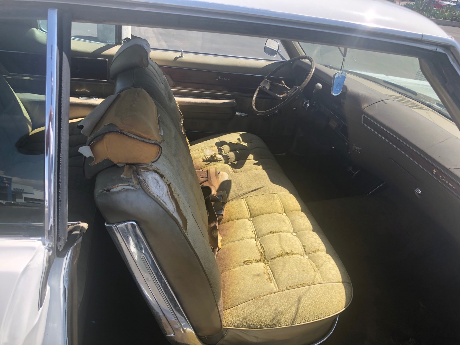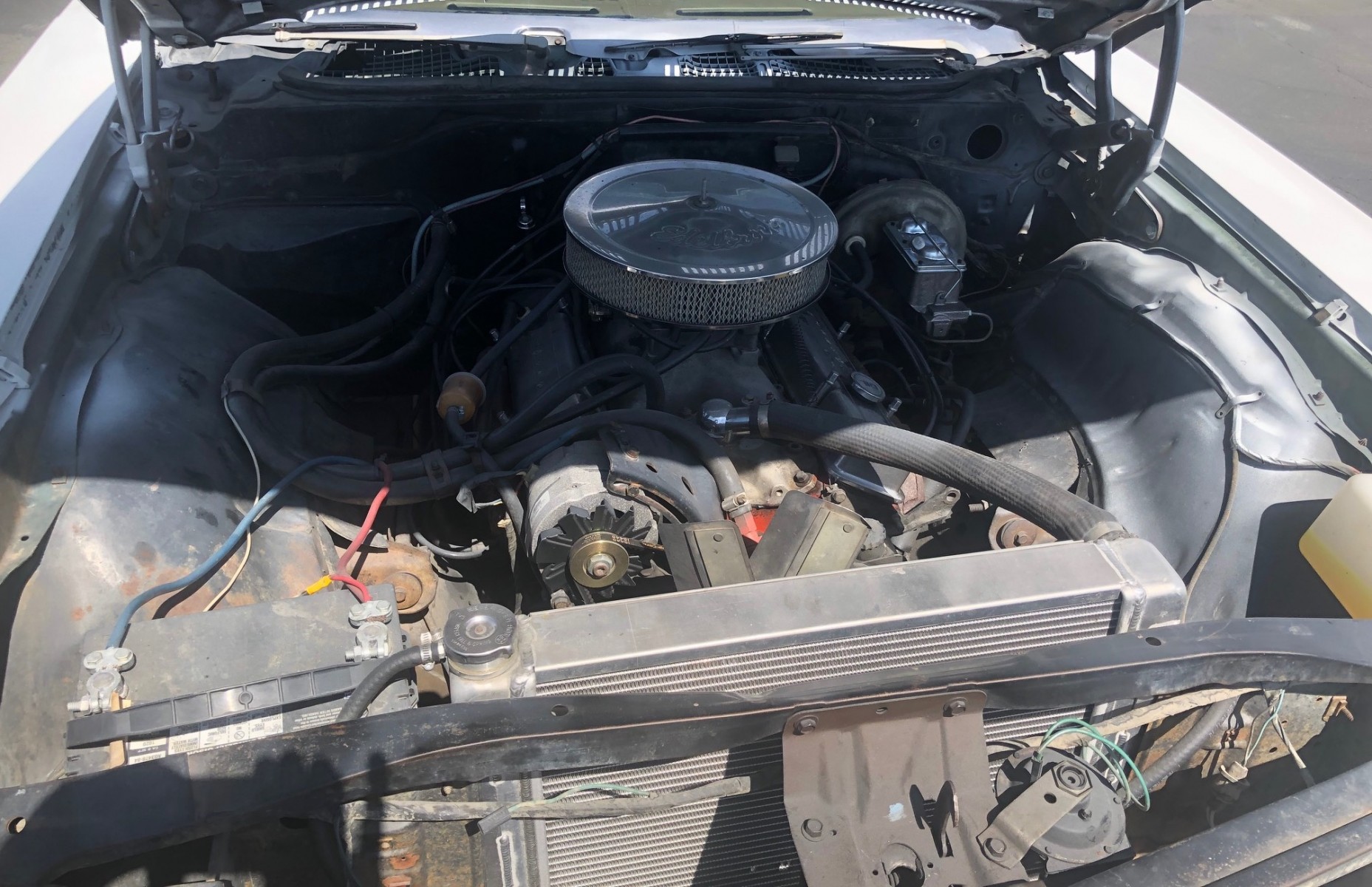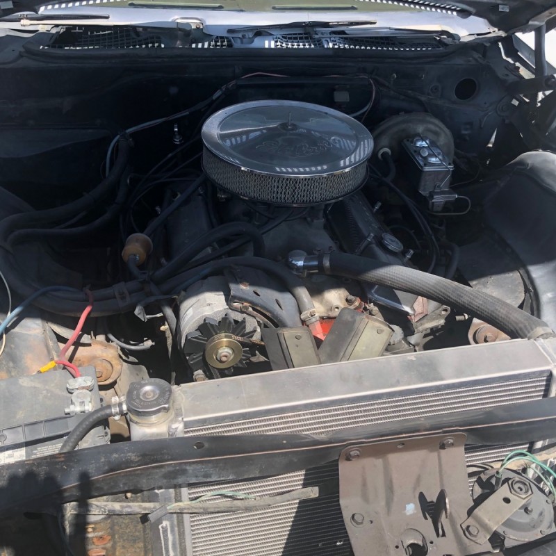 69,000 miles. previous owner was into racing so he really put a lot into the strong 400 engine. has a lot of power and runs perfect. The rest is all original. The rims and tires are free but the original hubcaps are in the trunk. Still have original bumpers jacks, radio and owners manuel. Will need front seat repaired. Will need new headliner. Otherwise a great complete car.