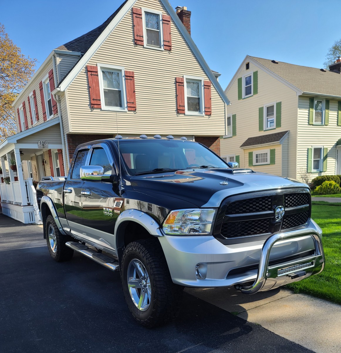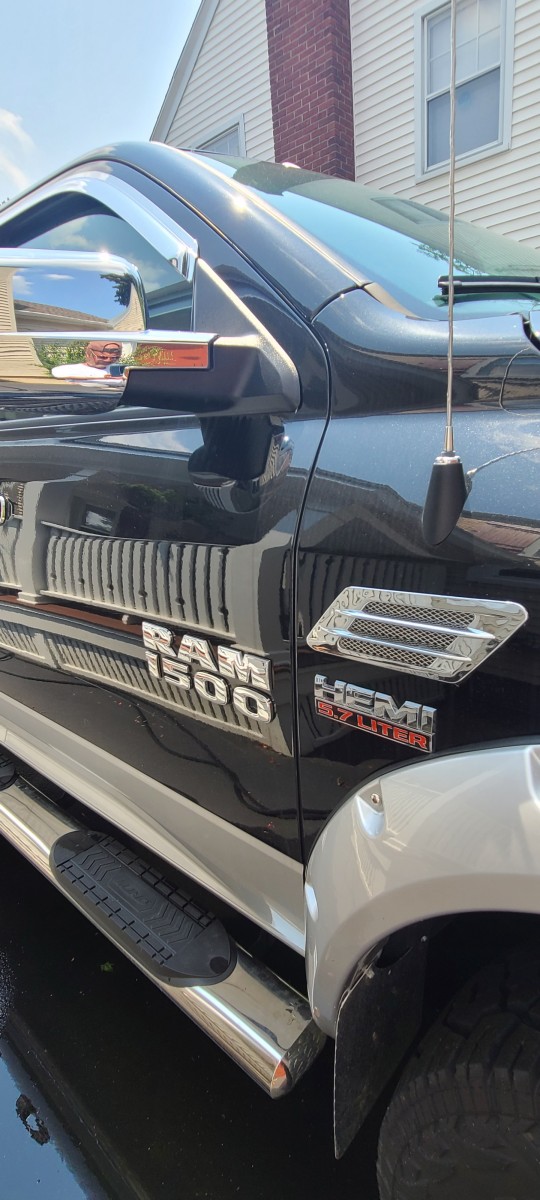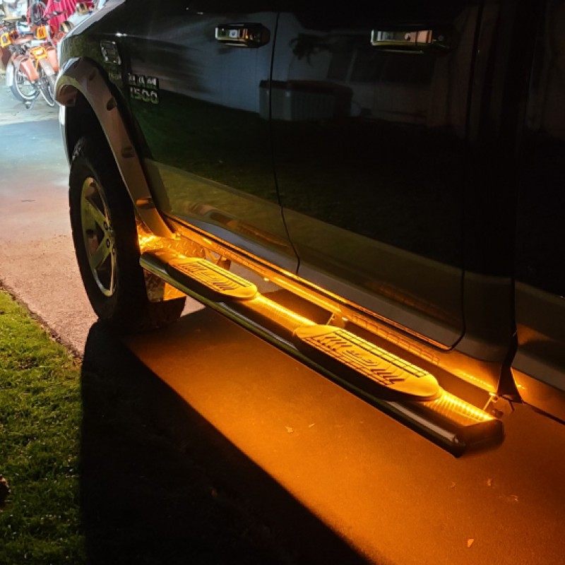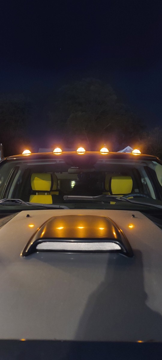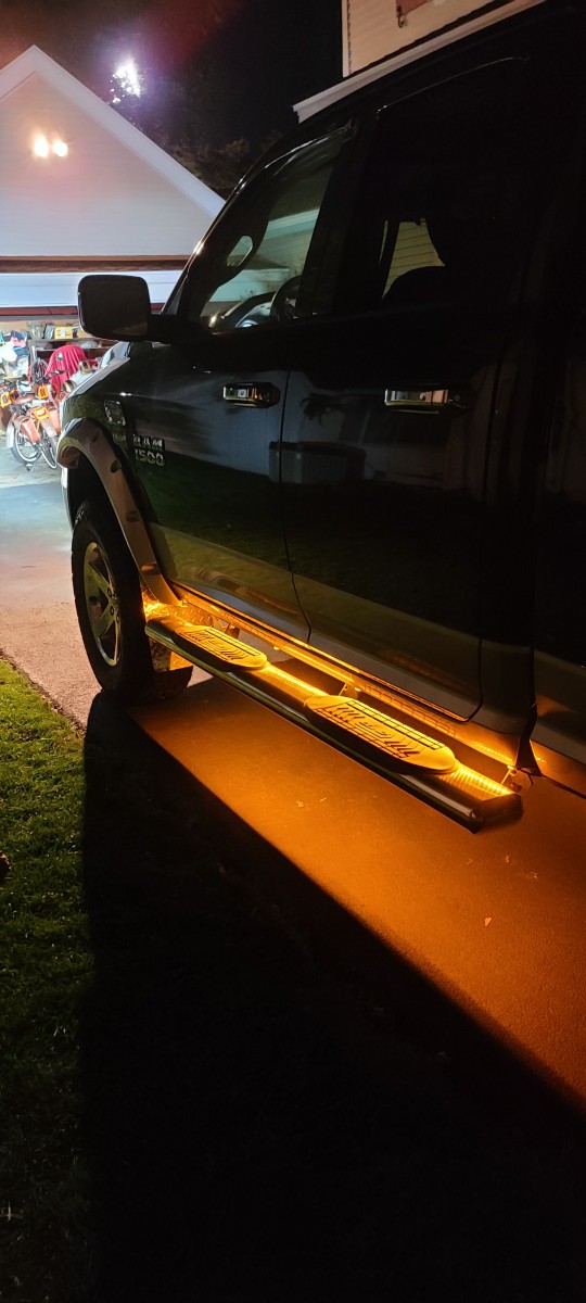 Totally customized and built up better than a 2500. Starts with roof marker lights, Led lit 6" polished stainless Lund running boards, super bright LED Westin Bull Bar, LED rear Rough Country rear integrated bumper back up lights with rear full length red brake and signal light bar. 8" rough Country lift with all new suspension parts, 37" on/off road Good Year tires, rear tail gate in hitch step lift chrome, K&B 6" cold air intake, stage 3 electronic power chip, MBRB 4" stainless power exhaust, mid range sound. Sounds awesome. 455 HP with up grades. Custom fit neoprene yellow and black seat covers, custom floor mats wit RAM logo.