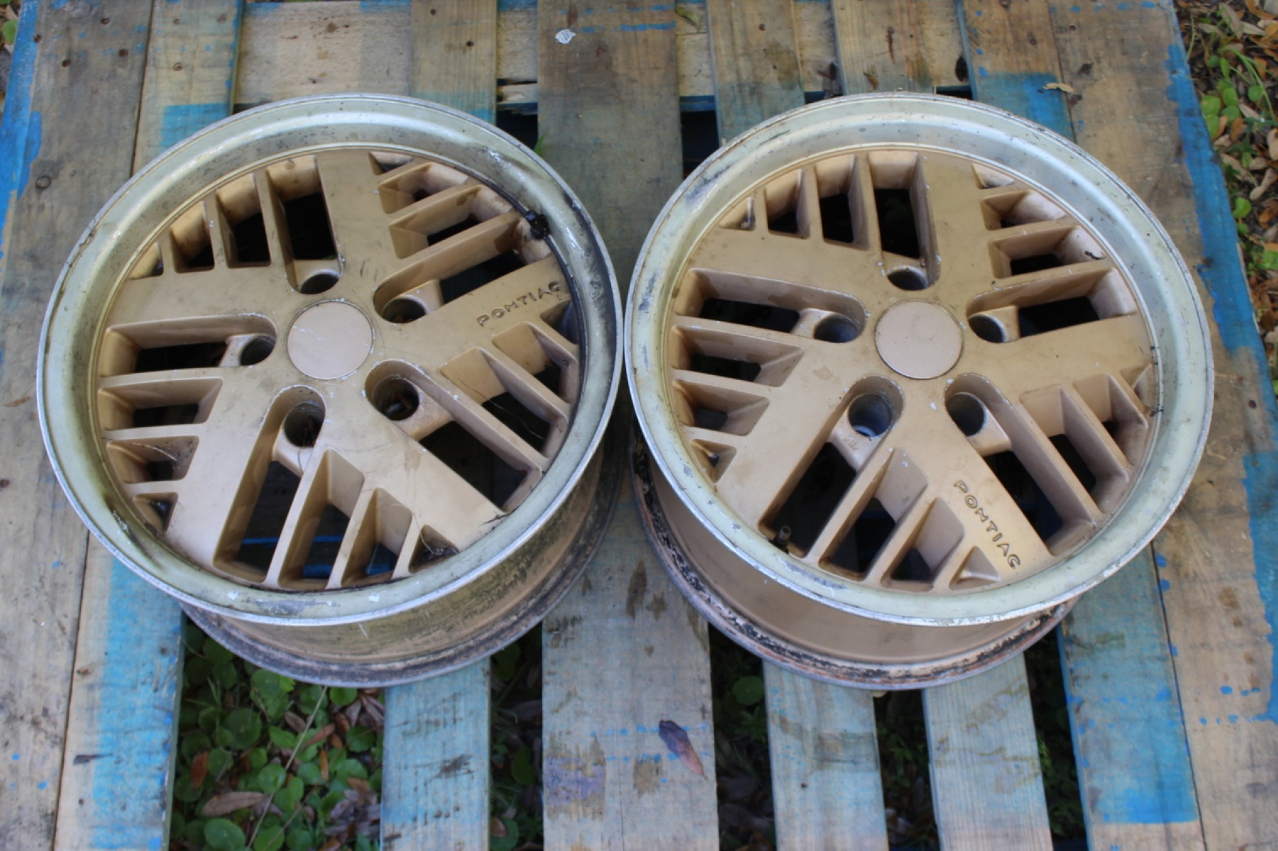 This is for a pair of Gold Pontiac Firebird Trans am aluminum wheels 16x8 5 on 4 3/4 bolt pattern.