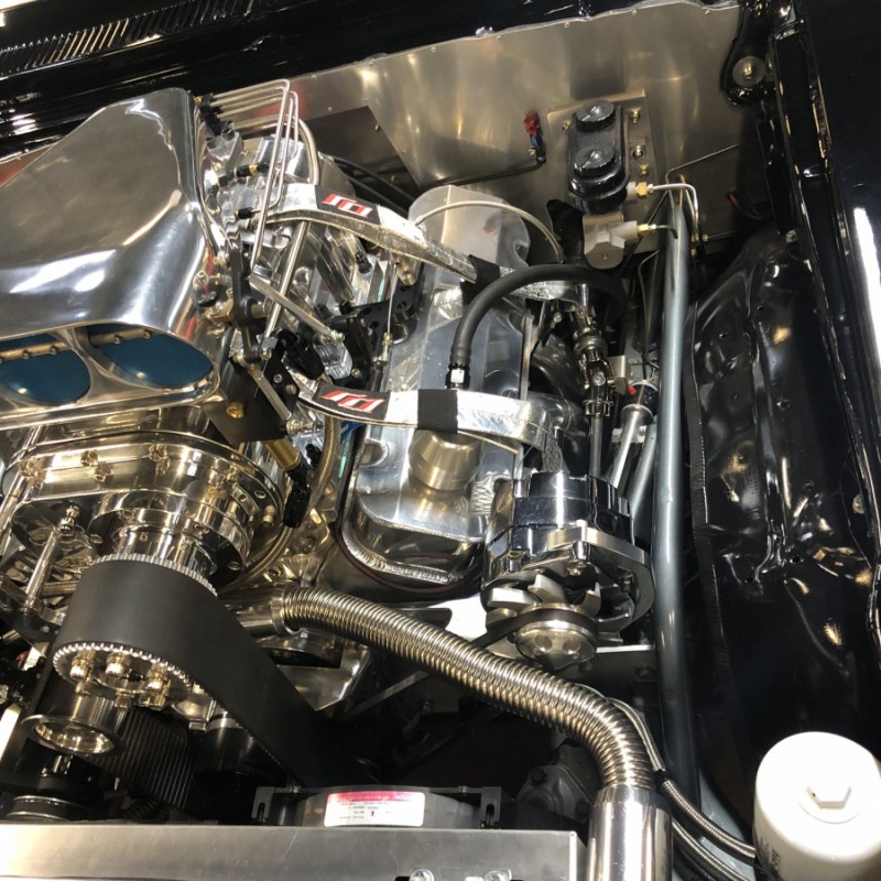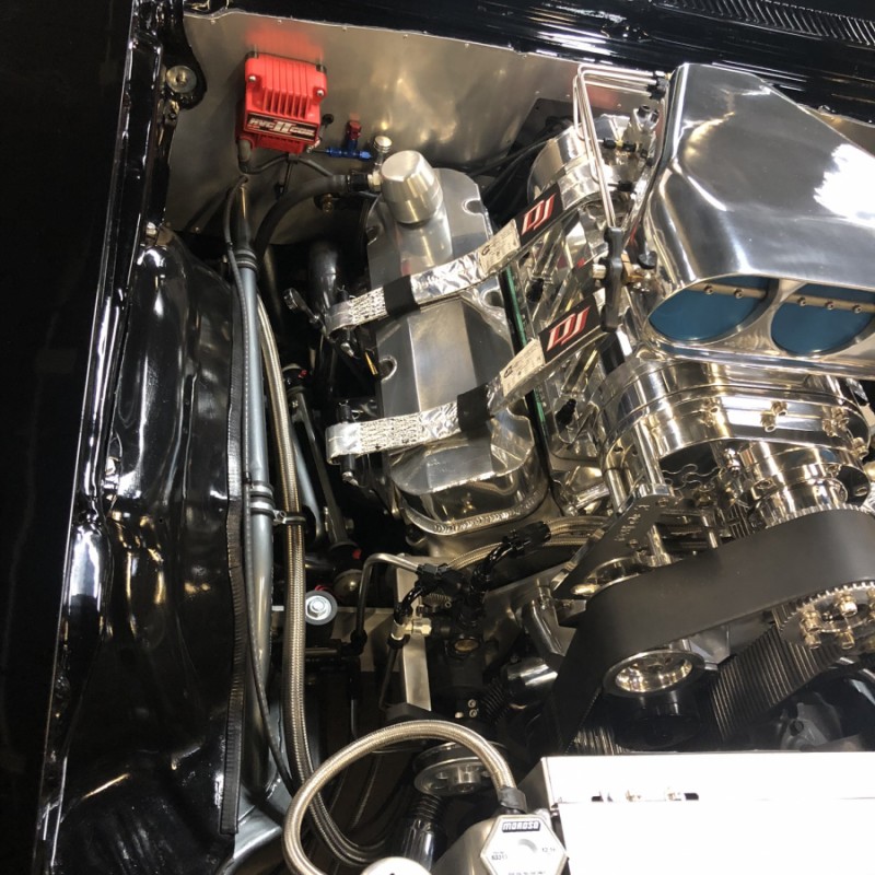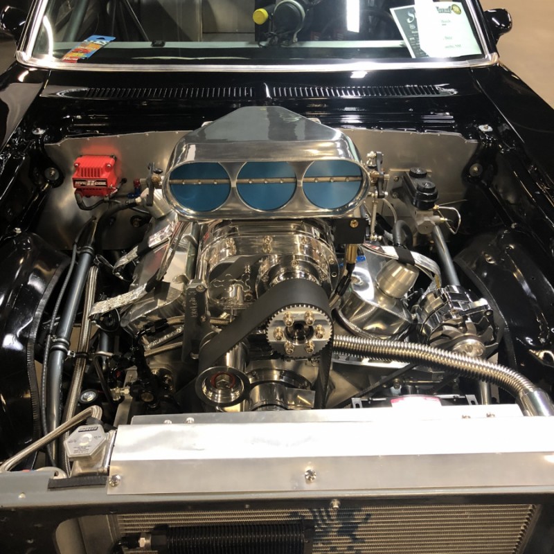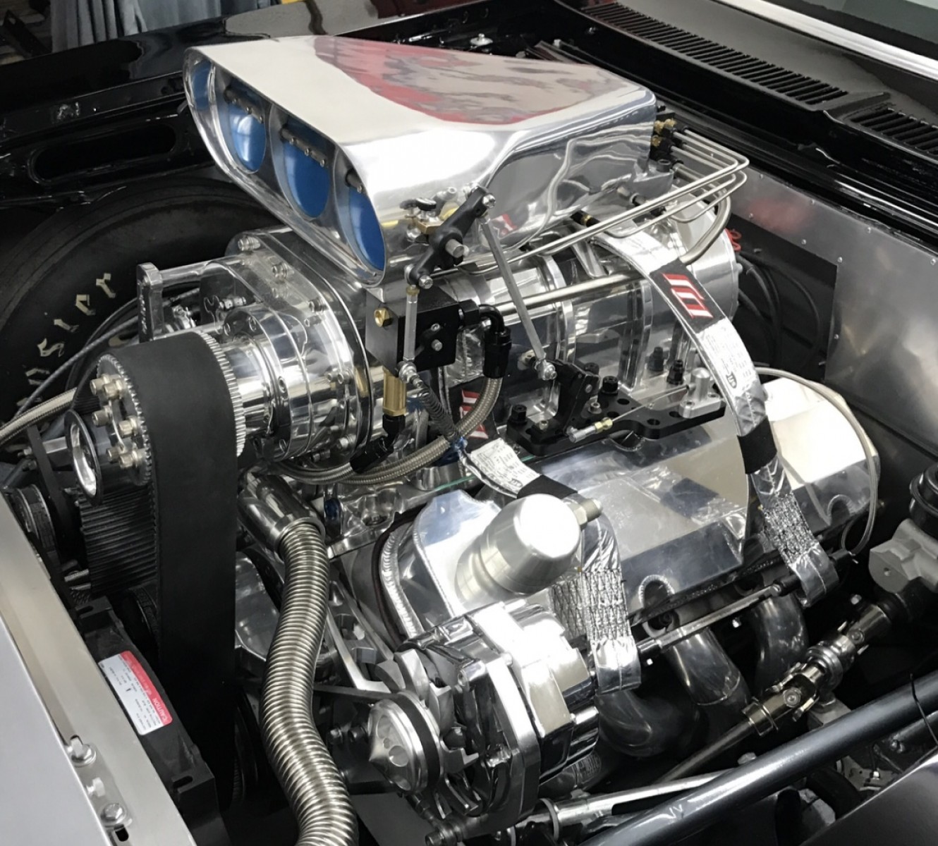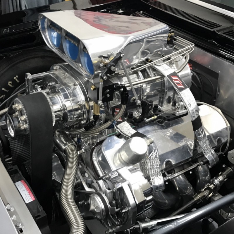 Engine 496 Cubic Inch, GM block bolt main, ARP studs, Callies crank and Rods, Weisco pistons 10.7 Compression ratio, Canfield cylinder heads 350cc runners, Camp cams camshaft 11-740-9 and lifters, Jesel shaft rockers, The blower shop 8-71 multiple pulleys to change configuration, Enderle Bird catcher injection system with Extra jets and injectors, Hooker 2-1/4 Coated Headers.