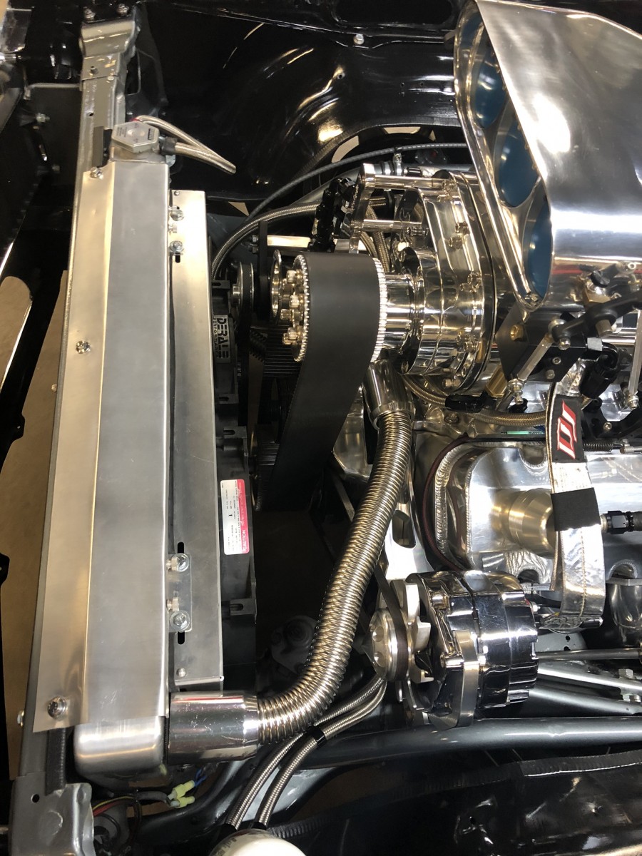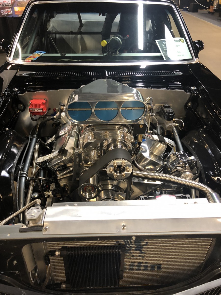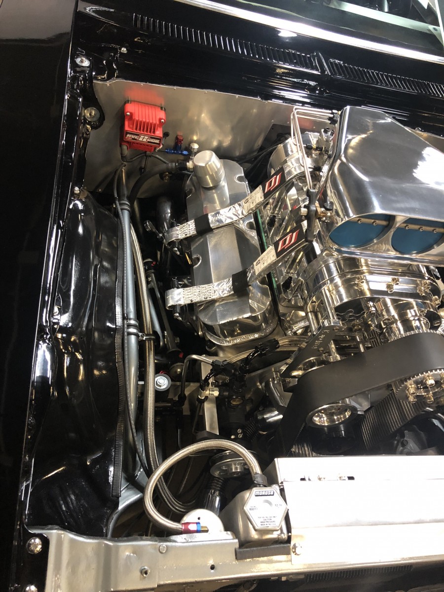 Engine 496 Cubic Inch, GM block bolt main, ARP studs, Callies crank and Rods, Weisco pistons 10.7 Compression ratio, Canfield cylinder heads 350cc runners, Camp cams camshaft 11-740-9 and lifters, Jesel shaft rockers, The blower shop 8-71 multiple pulleys to change configuration, Enderle Bird catcher injection system with Extra jets and injectors, Hooker 2-1/4 Coated Headers.