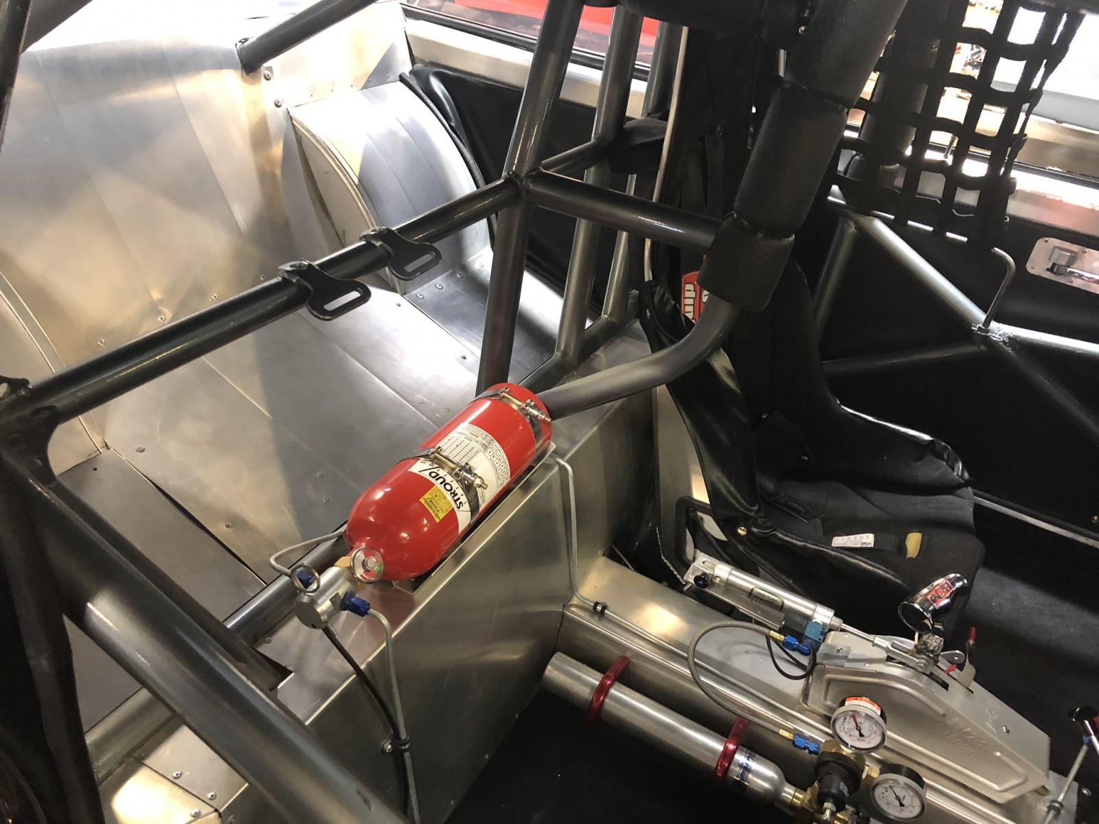 Interior, All AutoMeter gauges and switch panel, Fire suppression system, 16-gallon Fuel cell, Kirkey Racing seat, Air Shifter, B&M Shifter.