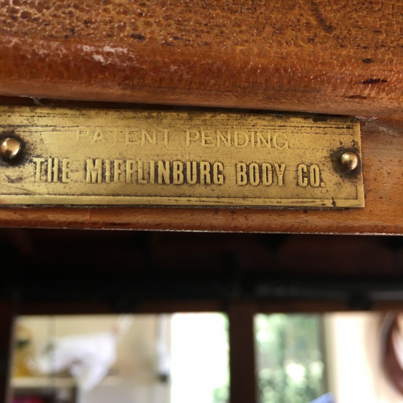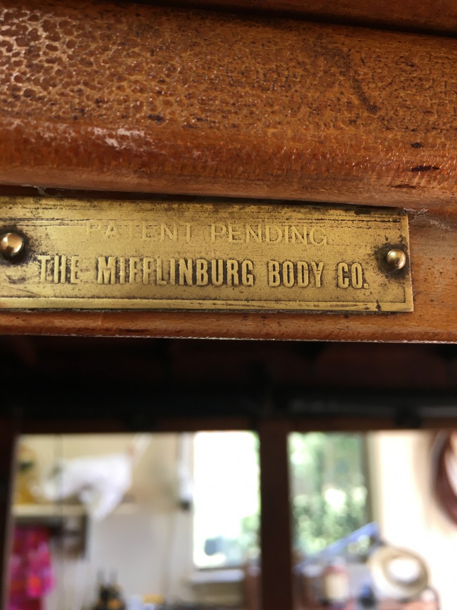 Original wood and hardware. Front window curtains have Mifflinburg brass ID plates.