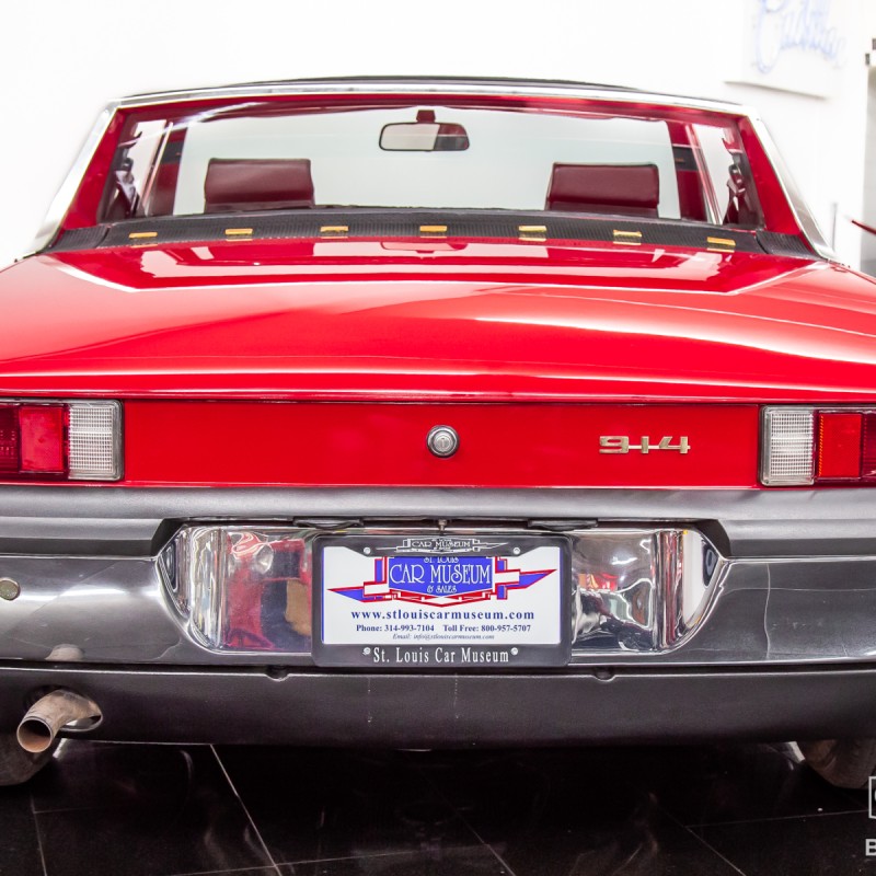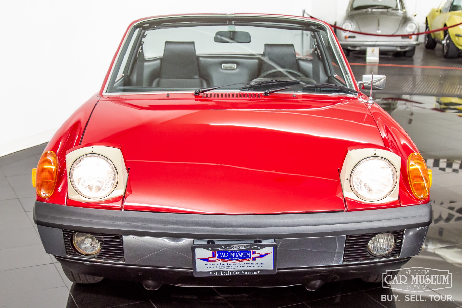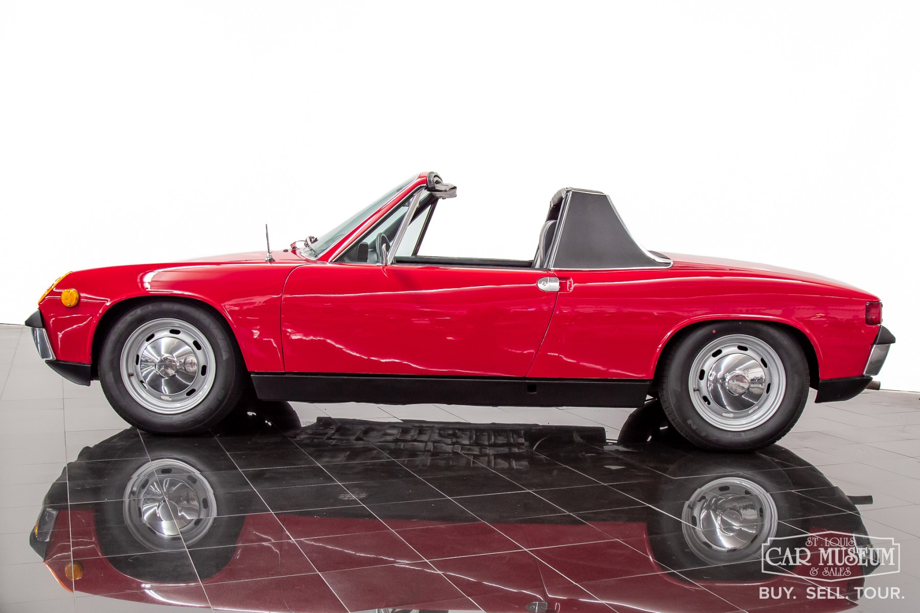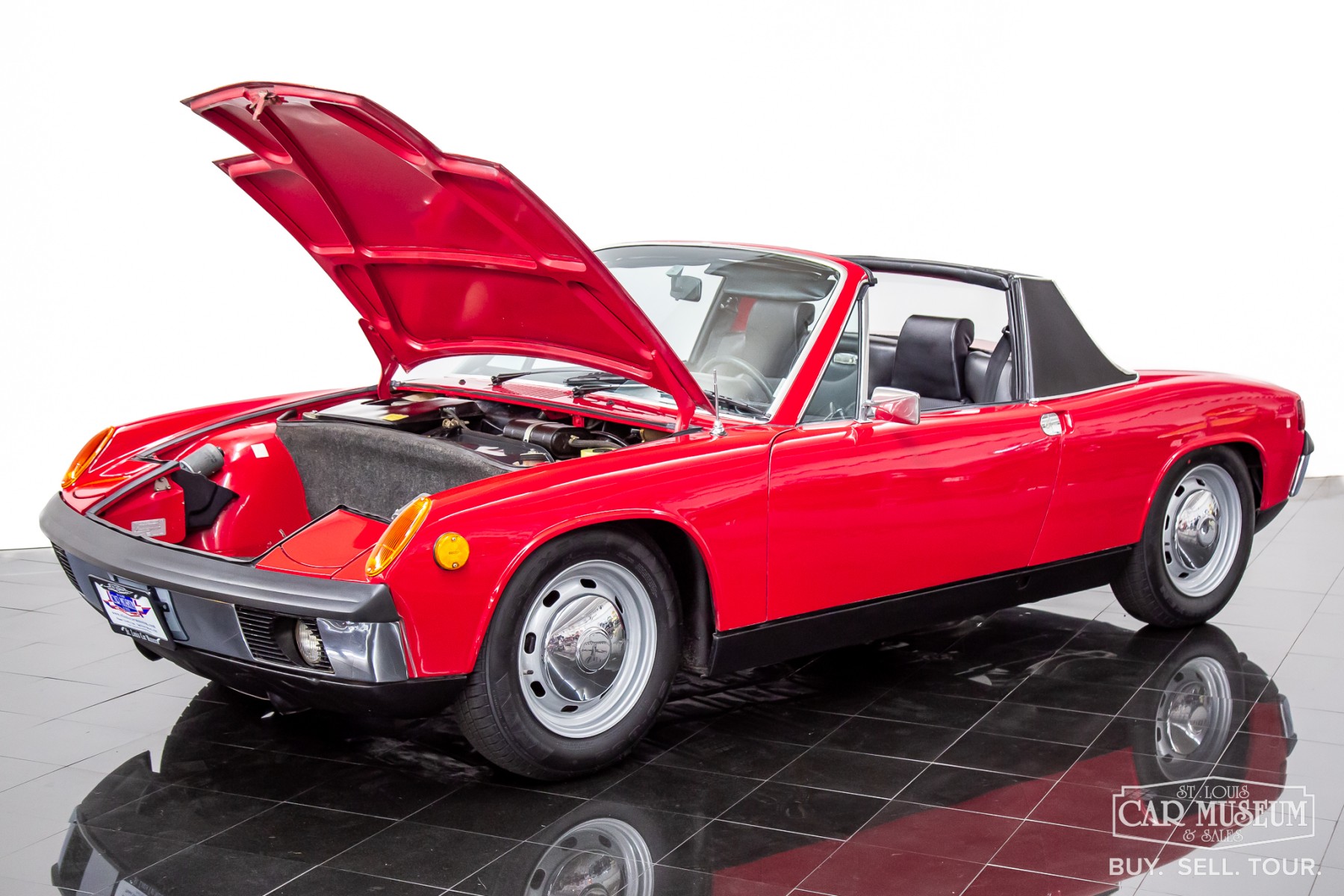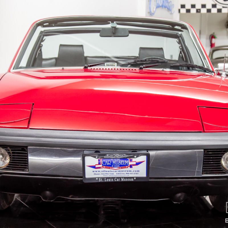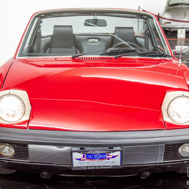 Delightful 1972 Porsche 914 1.7 Convertible Targa for sale at the St. Louis Car Museum with only 1 owner finished in factory code correct Bahia Red (L30E) over new black vinyl interior! Powered by the 1.7 Liter horizontal 4-cylinder engine providing a factory rated 79 horsepower and 96 lb. ft. of torque! Options include 5-speed manual transmission, 4-wheel disc brakes, Sapphire XXII AM/FM radio (in-op), heater and defrost, passenger vanity mirror, desired Appearance Group Package (center console with VDO gauges, pile-type carpeting, tinted glass, chrome bumpers, fog lights, vinyl covered roll bar, leather wrapped wheel) and removable Targa roof panel!