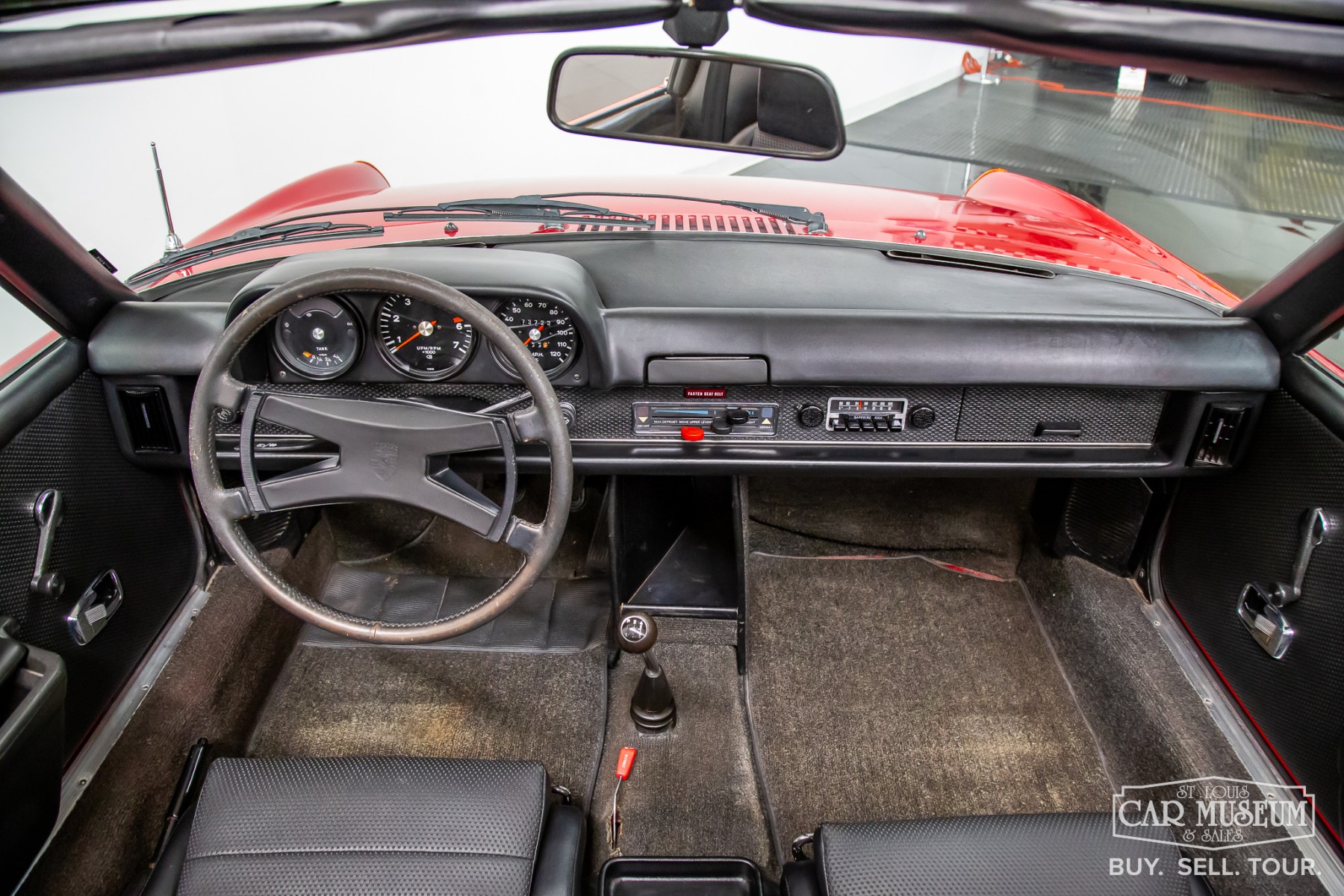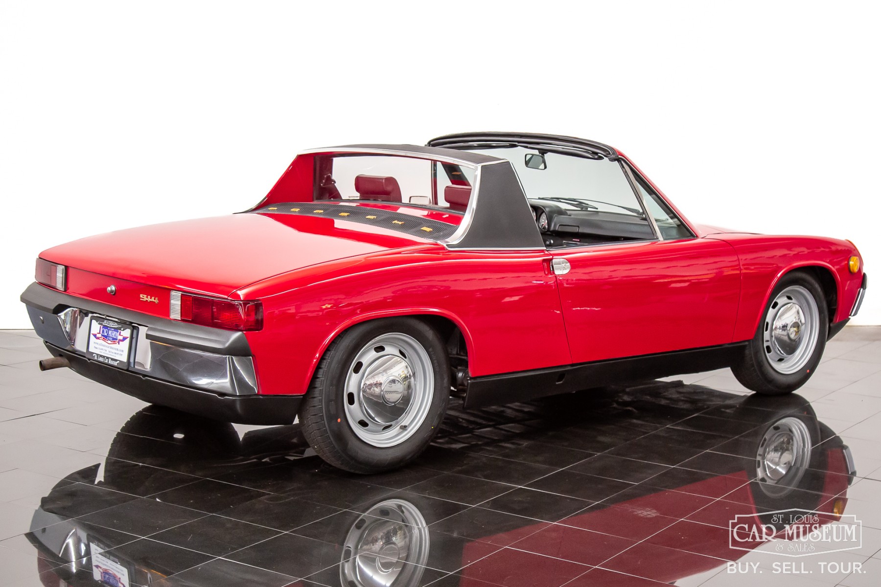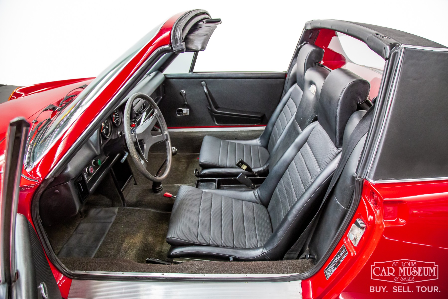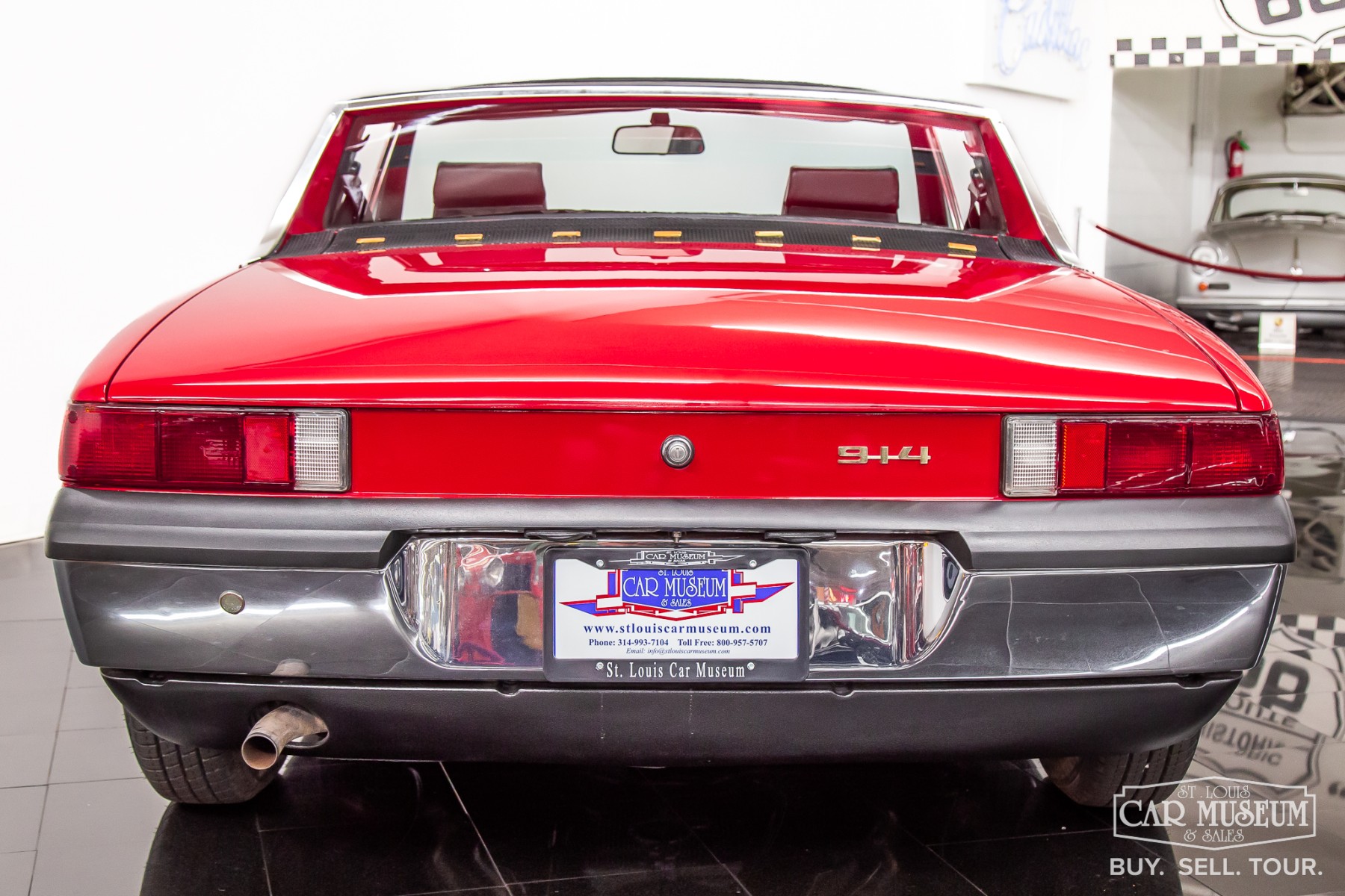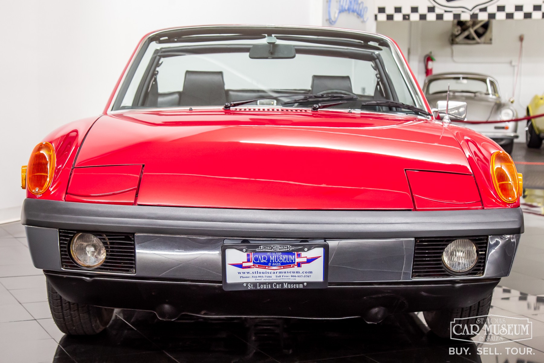 Delightful 1972 Porsche 914 1.7 Convertible Targa for sale at the St. Louis Car Museum with only 1 owner finished in factory code correct Bahia Red (L30E) over new black vinyl interior! Powered by the 1.7 Liter horizontal 4-cylinder engine providing a factory rated 79 horsepower and 96 lb. ft. of torque! Options include 5-speed manual transmission, 4-wheel disc brakes, Sapphire XXII AM/FM radio (in-op), heater and defrost, passenger vanity mirror, desired Appearance Group Package (center console with VDO gauges, pile-type carpeting, tinted glass, chrome bumpers, fog lights, vinyl covered roll bar, leather wrapped wheel) and removable Targa roof panel!