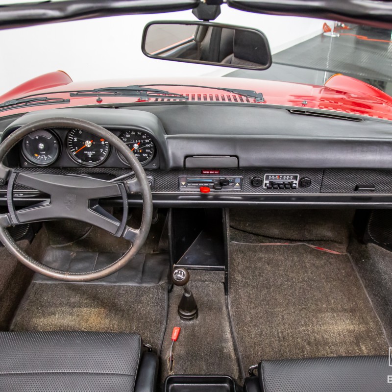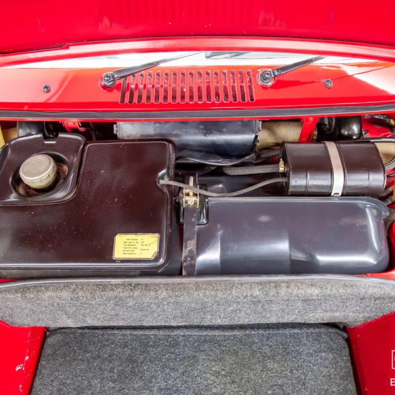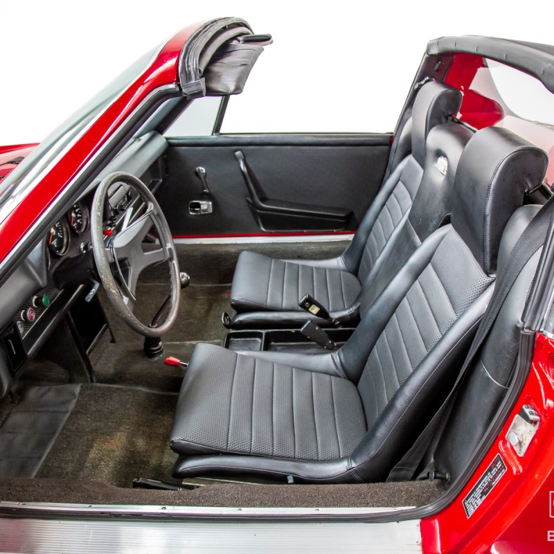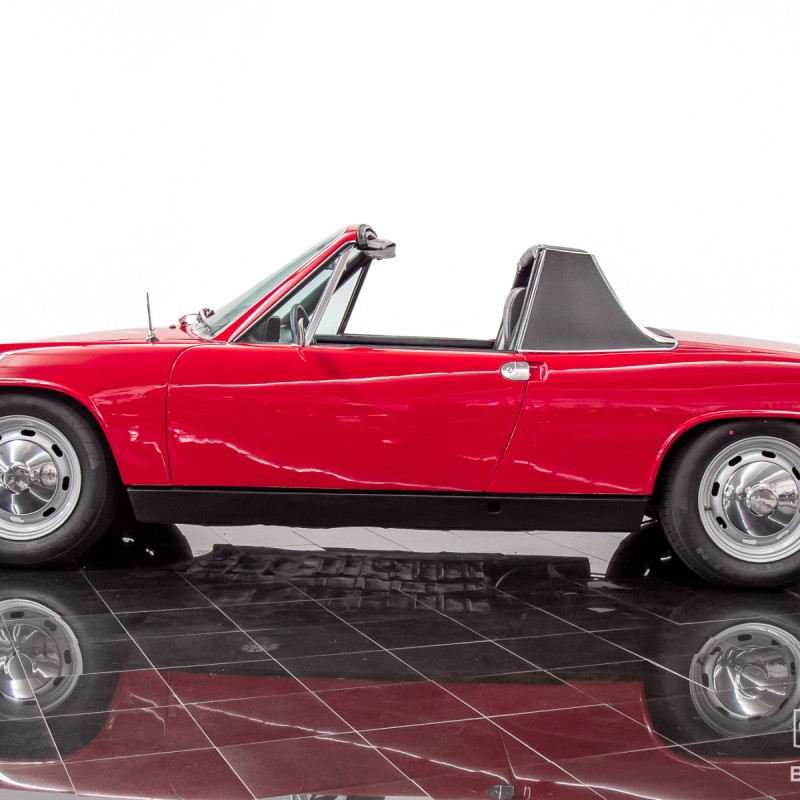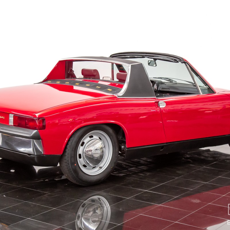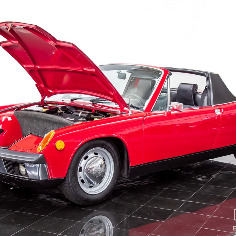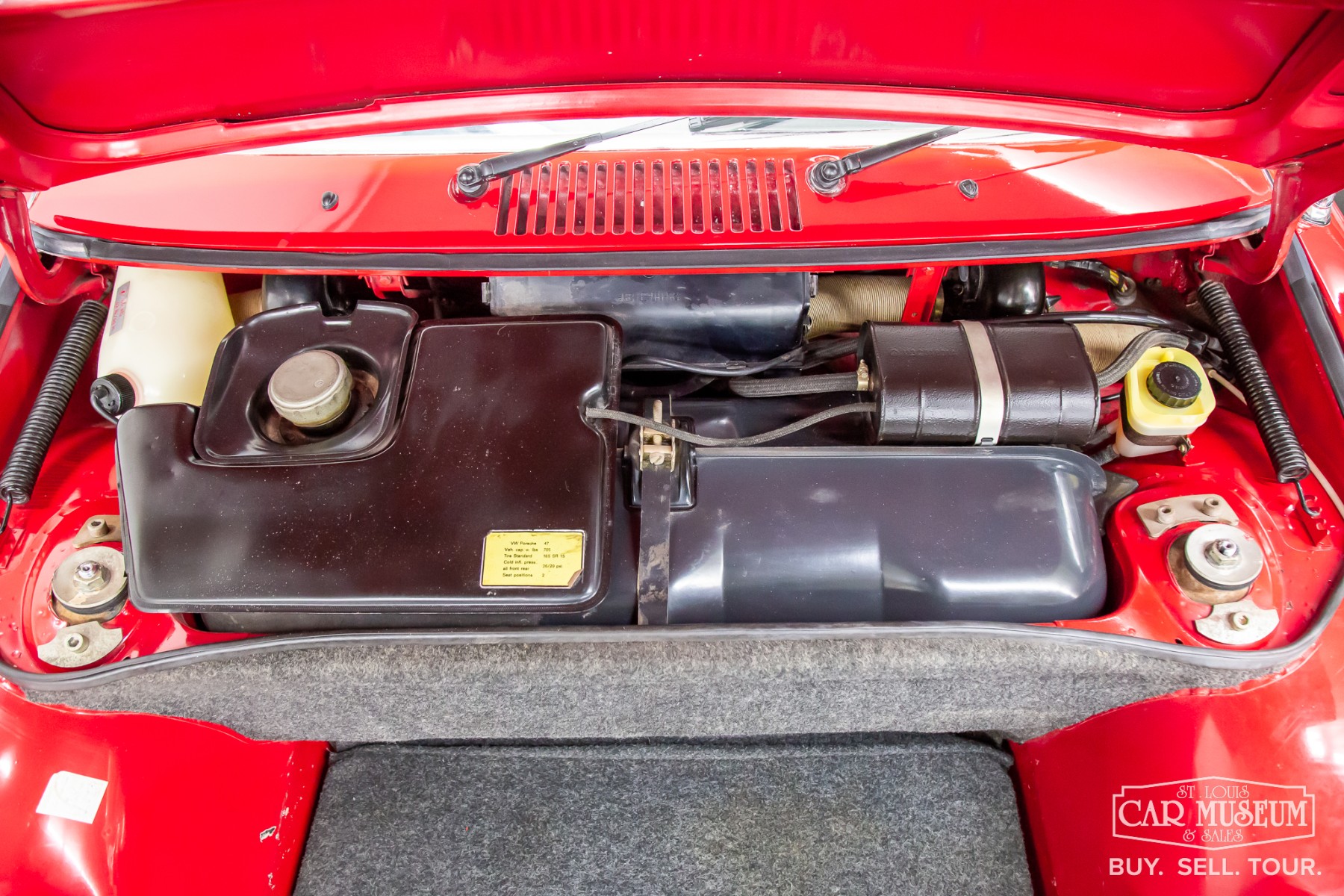 Delightful 1972 Porsche 914 1.7 Convertible Targa for sale at the St. Louis Car Museum with only 1 owner finished in factory code correct Bahia Red (L30E) over new black vinyl interior! Powered by the 1.7 Liter horizontal 4-cylinder engine providing a factory rated 79 horsepower and 96 lb. ft. of torque! Options include 5-speed manual transmission, 4-wheel disc brakes, Sapphire XXII AM/FM radio (in-op), heater and defrost, passenger vanity mirror, desired Appearance Group Package (center console with VDO gauges, pile-type carpeting, tinted glass, chrome bumpers, fog lights, vinyl covered roll bar, leather wrapped wheel) and removable Targa roof panel!