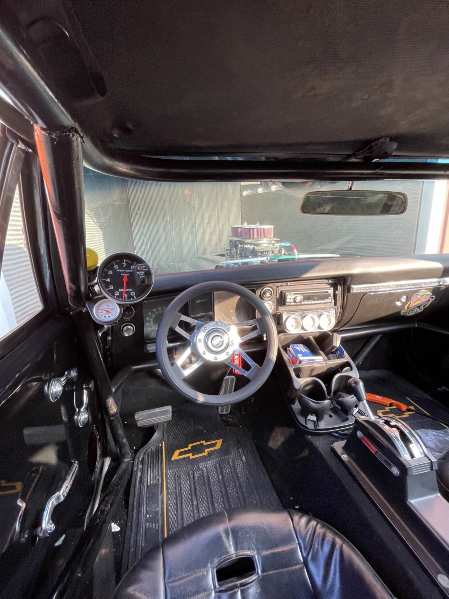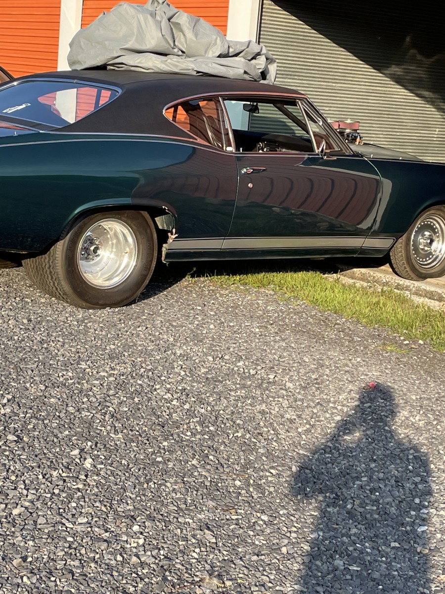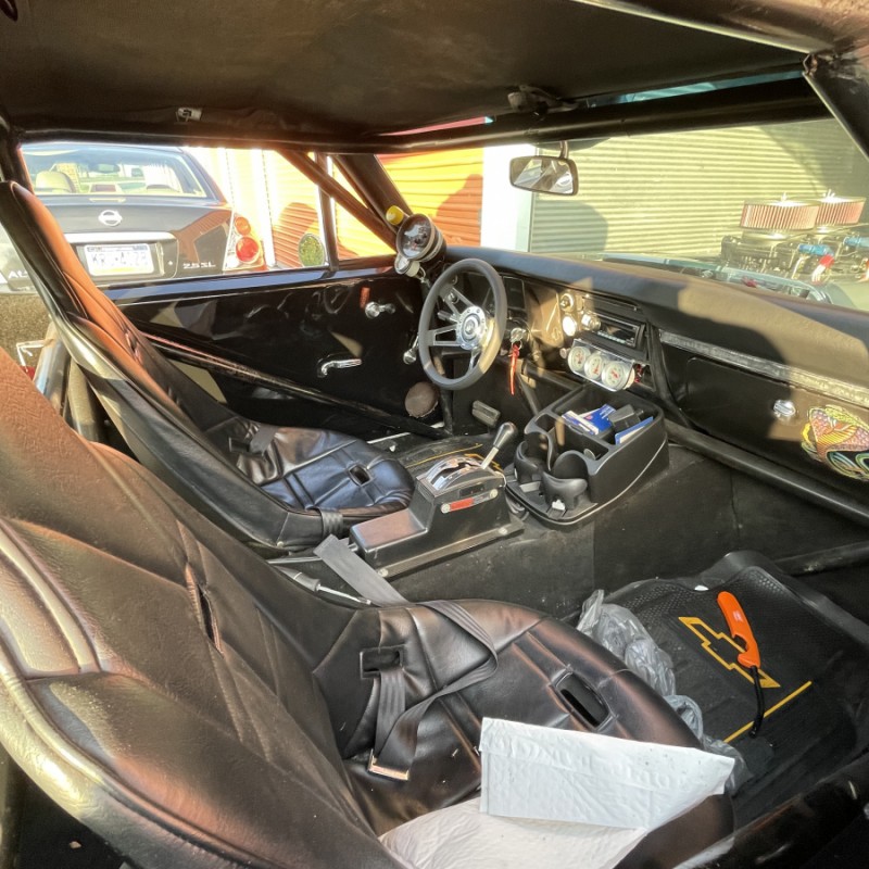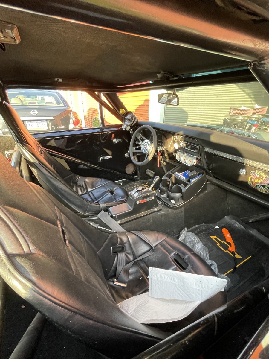 68 chevelle 402 big block with 671 blower tube chassis rubbed out rear Ford 9” rear 3 speed turbo 350 I don’t know the gears in the rear end car has a roll cage fiberglass front end with fiberglass bumpers the rest of the car is steel . The bad the car needs some repair to passenger quarter panel and the hood blew off which is also fiberglass and cracked it for more about the car just email me and I’ll try to answer your questions my email is chrisbell91977@gmail.com