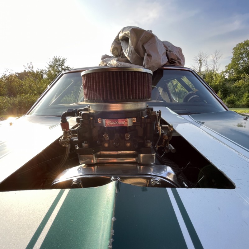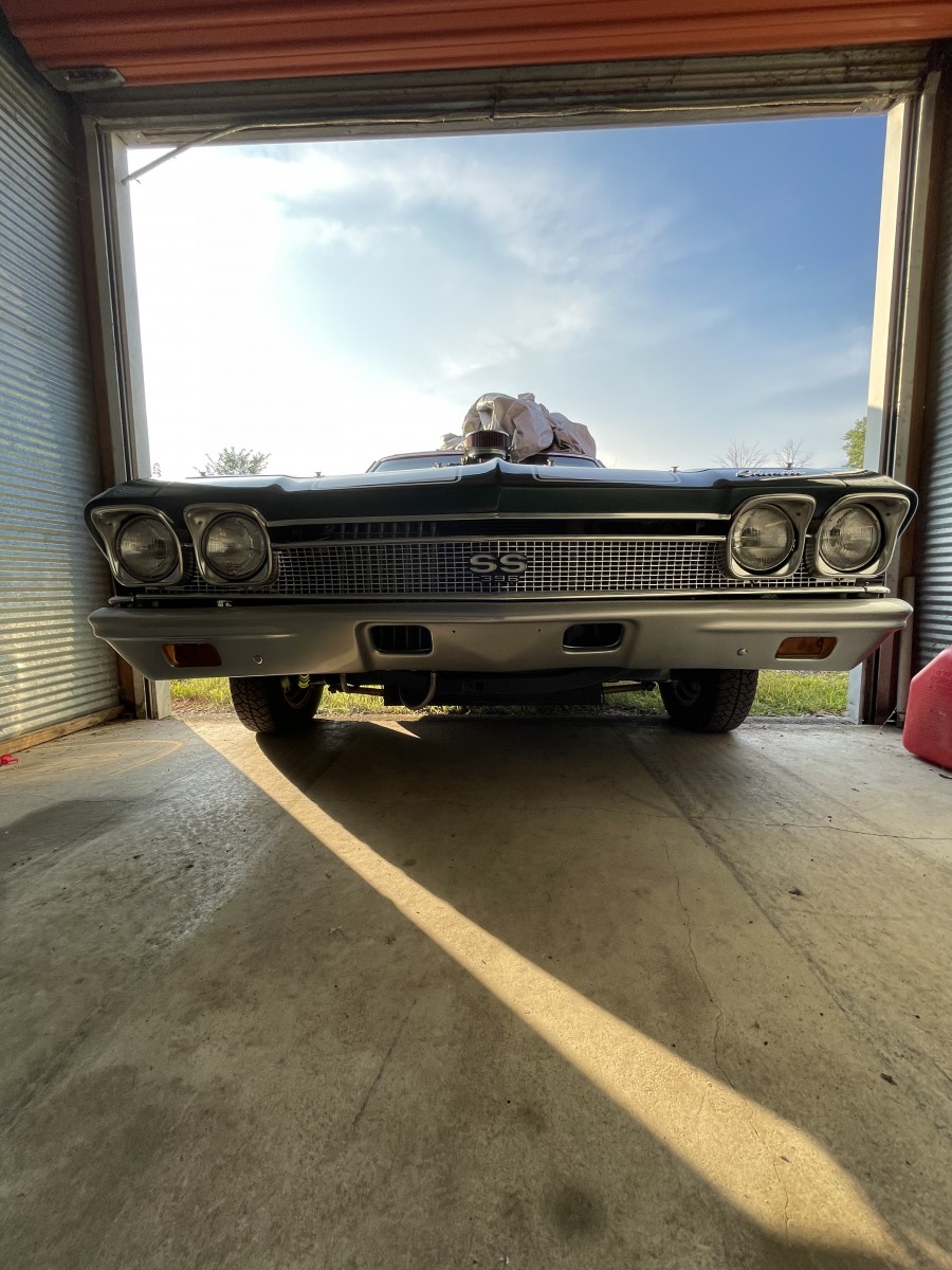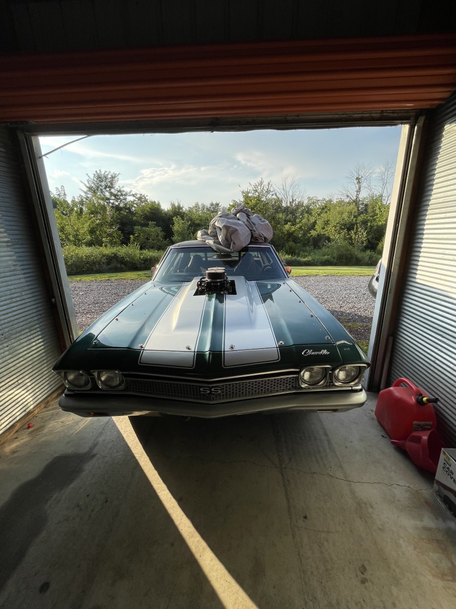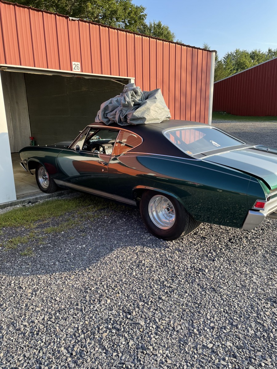 68 chevelle 402 big block with 671 blower tube chassis rubbed out rear Ford 9” rear 3 speed turbo 350 I don’t know the gears in the rear end car has a roll cage fiberglass front end with fiberglass bumpers the rest of the car is steel . The bad the car needs some repair to passenger quarter panel and the hood blew off which is also fiberglass and cracked it for more about the car just email me and I’ll try to answer your questions my email is chrisbell91977@gmail.com