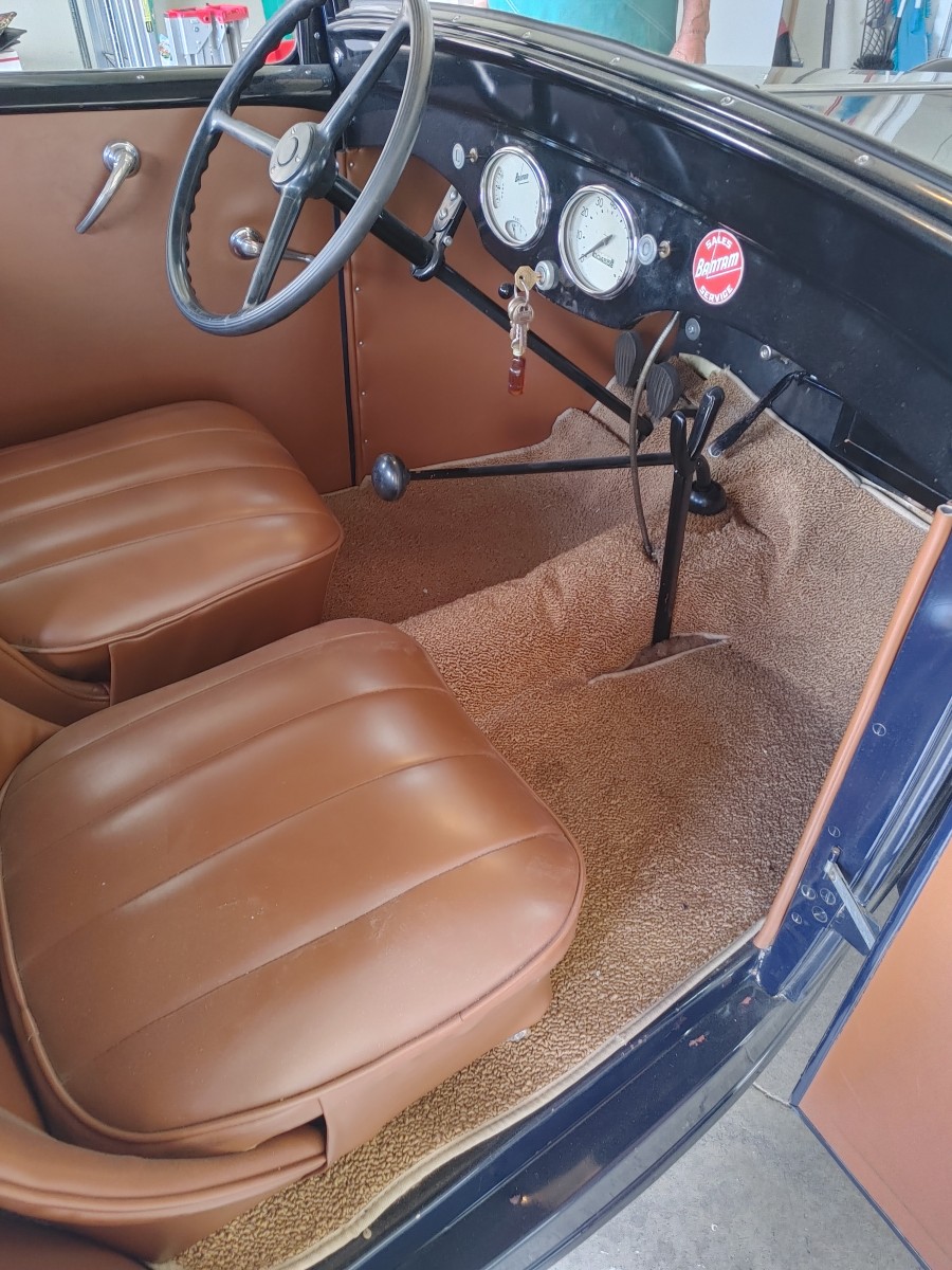Gas Tank: 5 gal under dashboard. Gravity feed to carburetor. 75” wheel base, weight: 1200 lbs. 60 miles to the gallon.