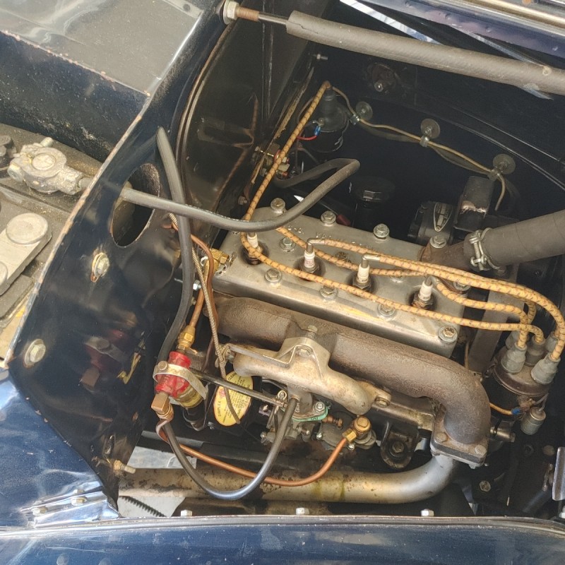 Engine: 20 hp., original aluminum cylinder head, 1 of 2 known to exist today.4-cylinder L head type (flat head)