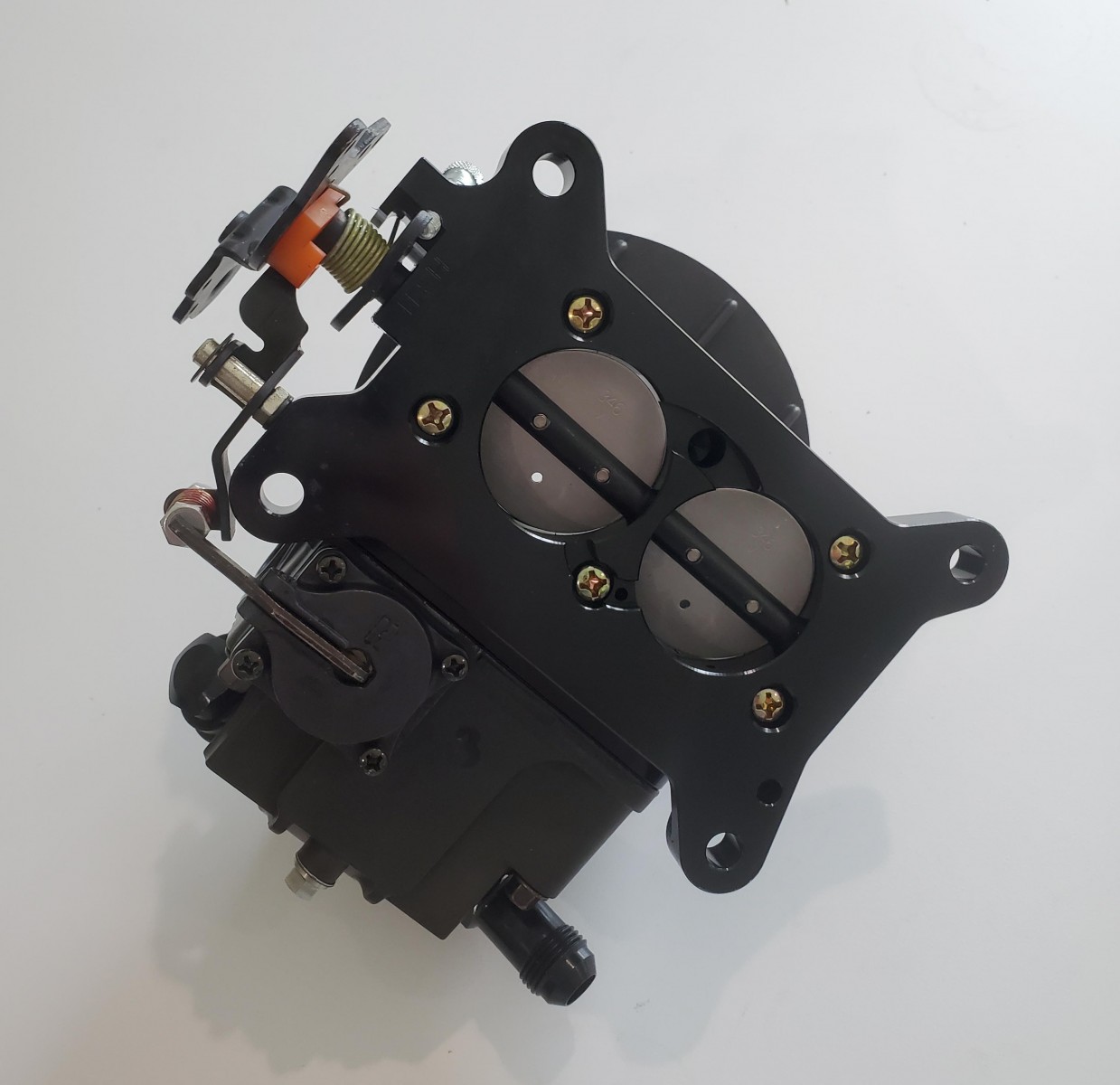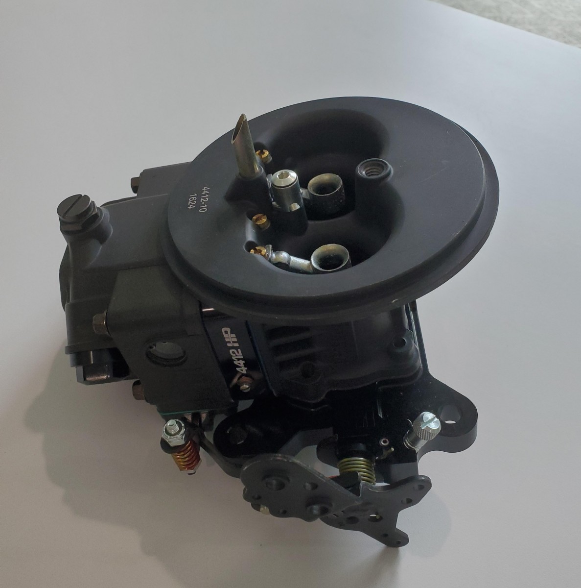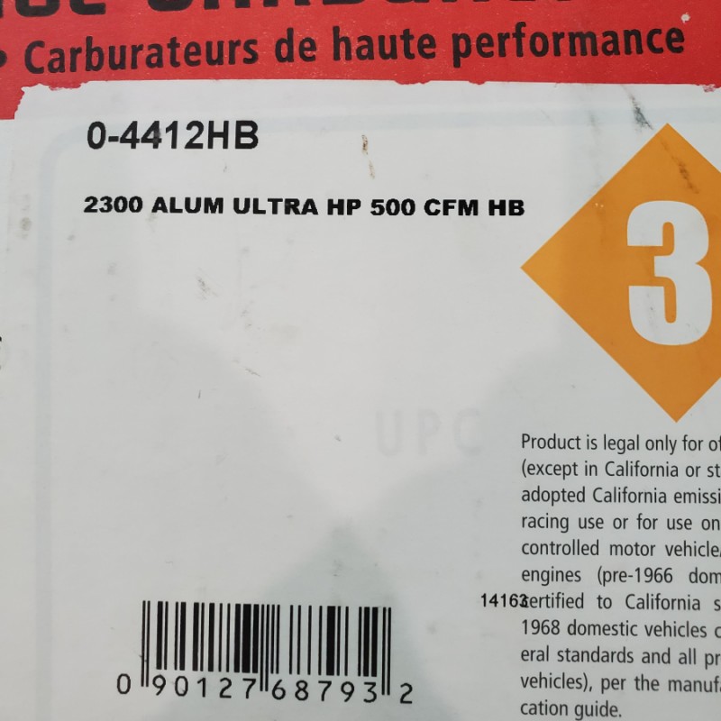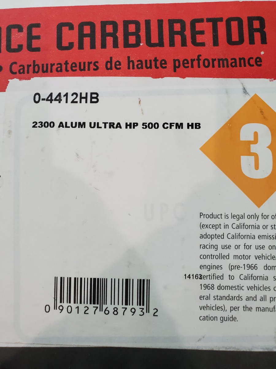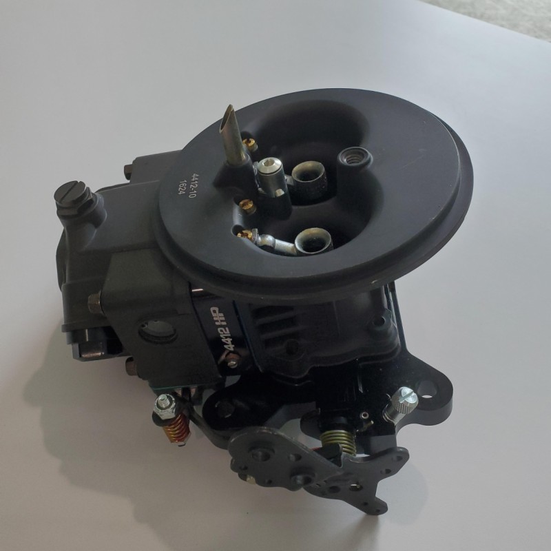 BRAND NEW, NEVER USED Holley 4412 2 Bbl Race Carb. The original Holley 0-4412 has powered thousands of racers to the winners' circle! How do you make it better? Add the proven design elements of the popular Ultra series for more tunability, more durability, more weight savings and more features! The Ultra XP 2bbl carburetors feature all aluminum construction for nearly 50% weight savings over their zinc counterparts, contoured venturii inlet for unobstructed airflow, screw in air bleeds for easy fine tuning, black anodized fully adjustable billet aluminum metering block and baseplate, high capacity fuel bowl which features 20% more fuel capacity to eliminate starvation, integrated fuel shelf to minimize fuel aeration and internal baffling to control fuel slosh and a centered air cleaner flange for improved airflow and performance. Other notable features include wedged floats, knurled hand adjustable curb idle screw and down leg boosters. Ultra XP 2bbl carburetors are approved for use in NASCARĀ® Mid-West/West Coast Late Model Divisions and utilize the same venturii and throttle bore dimensions of the classic 4412 2bbl carburetor. Available in shiny or Hard Core Gray finishes, the Ultra XP 2bbl will outperform any production 2bbl available.