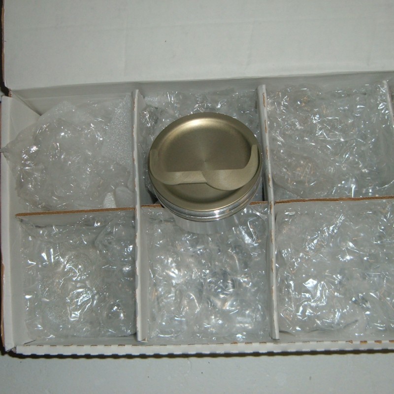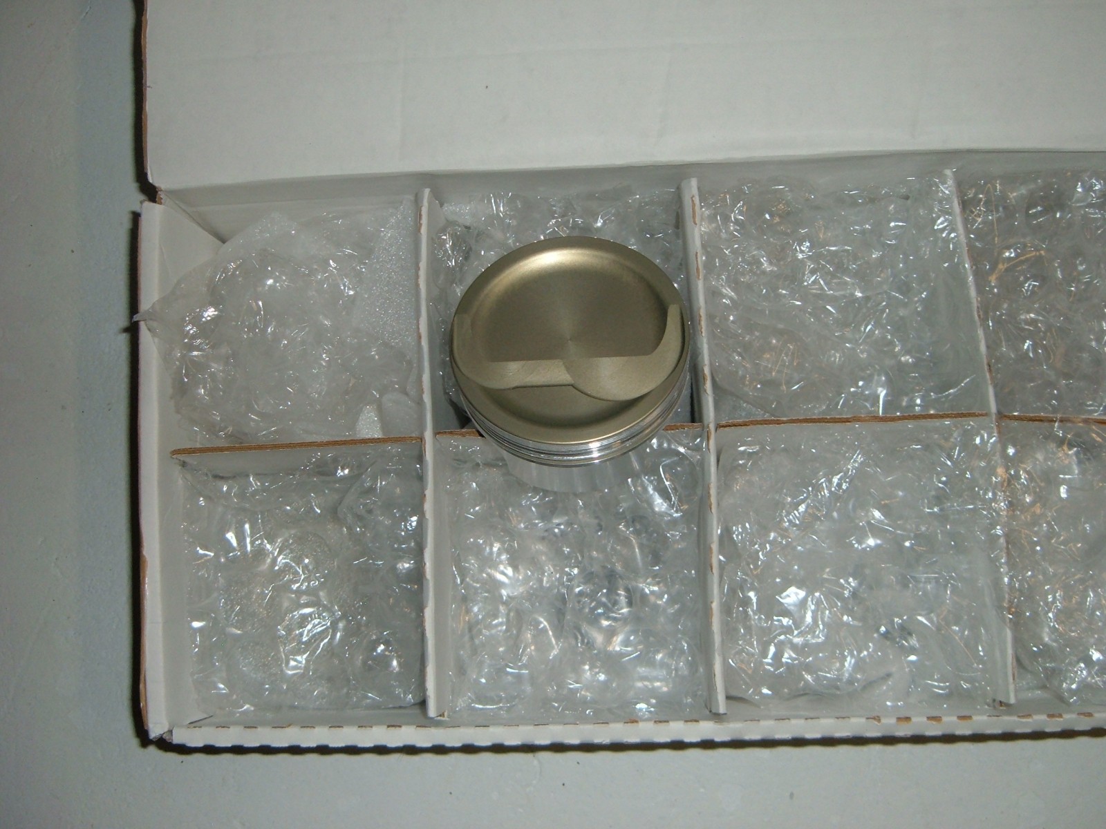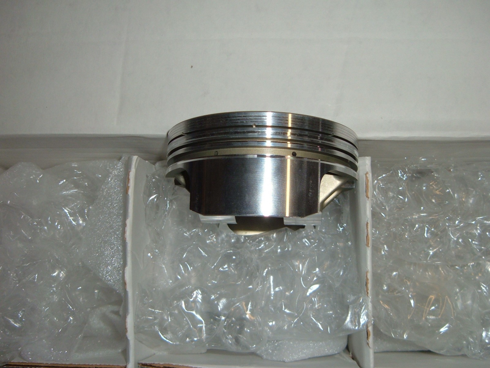 New in box pistons 4.125 bore 2618 material -27cc Hard anodized coated 1.140 compression ht takes .927 pin. Takes .043 .043 3mm rings. Valvereliefs are for 2.180 and 1.625. 419 grams. These are bare pistons only