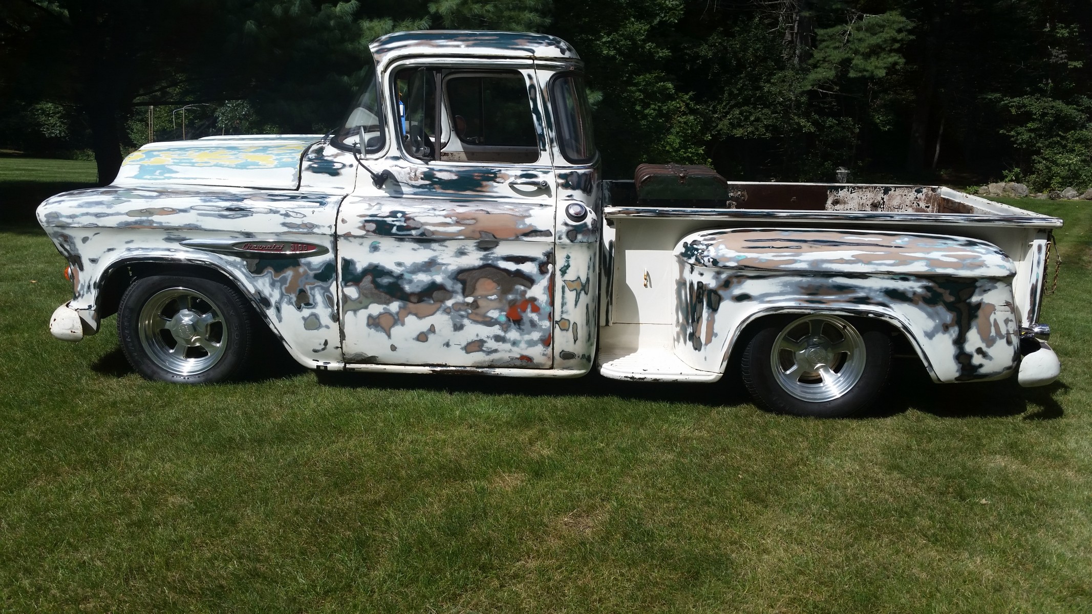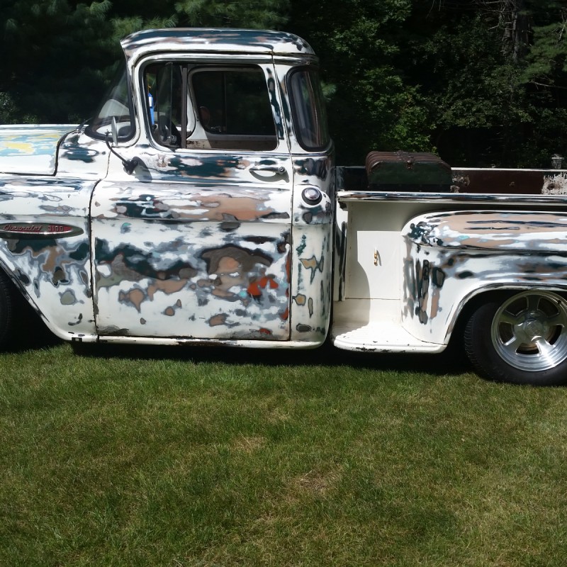 1957 pickup. 383 stroker,700R4, 74 Camaro clip, 57 Corvette posi rr, California solid body, 75 years of three paint jobs sanded and clearcoat