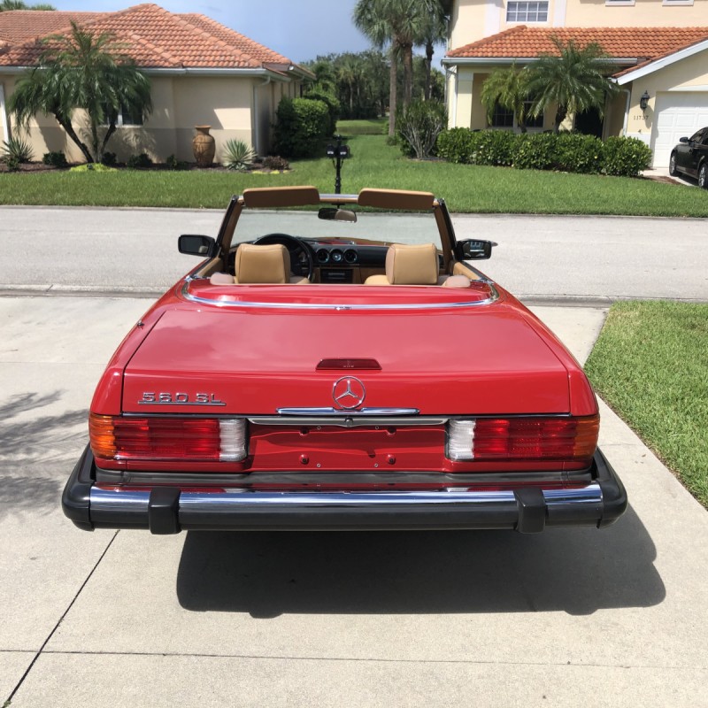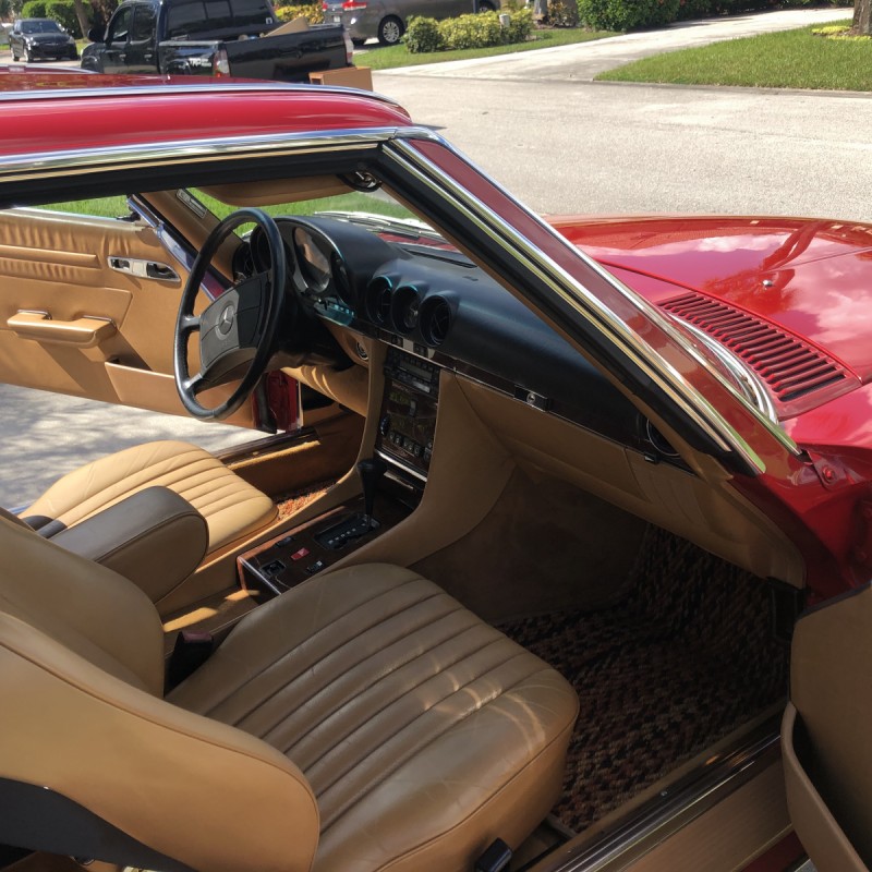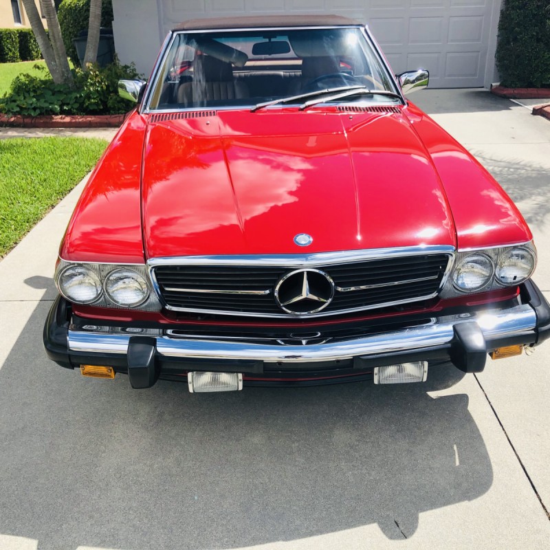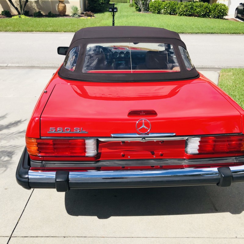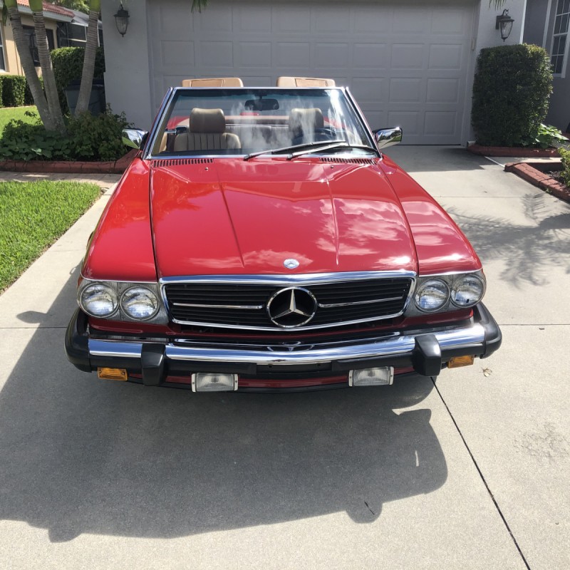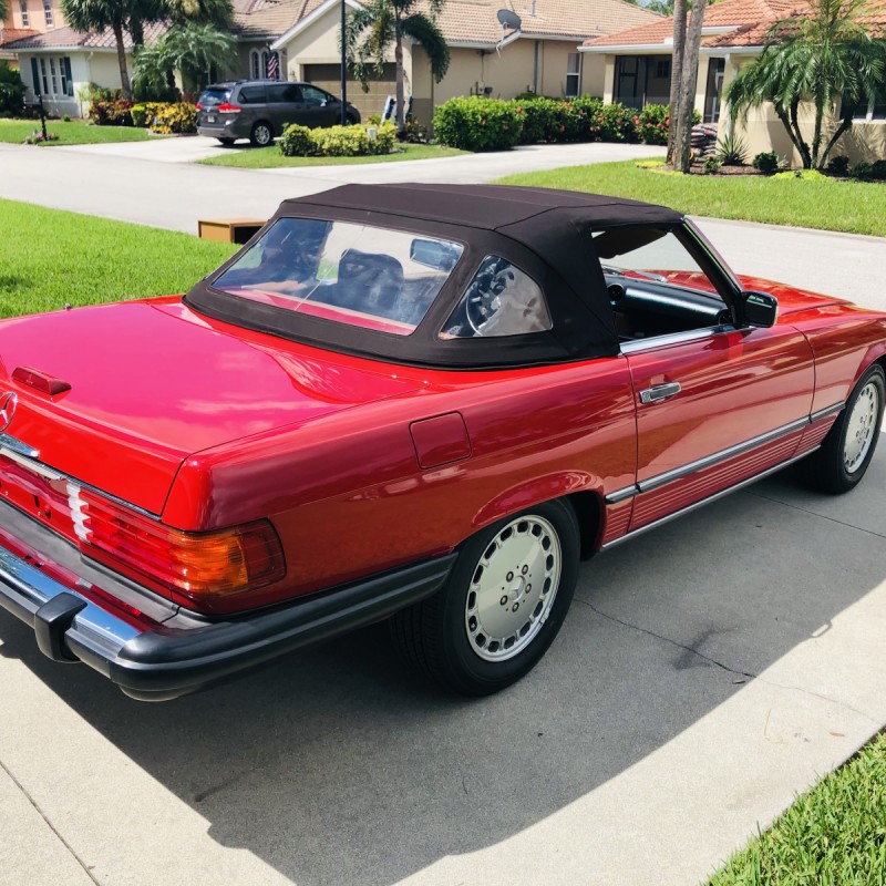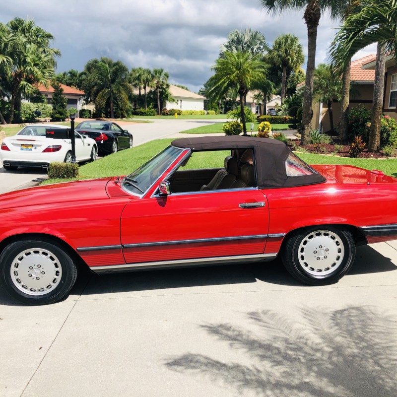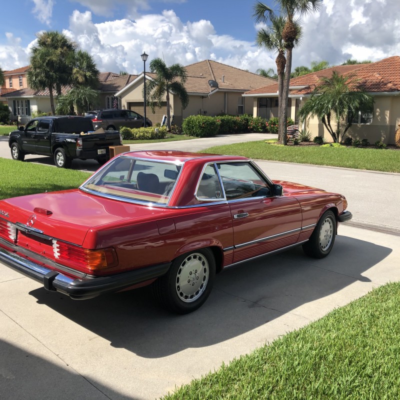 This 1988 Mercedes-Benz 560SL is finished in Signal Red over a Palomino leather interior. The car was purchased from a doctor and his wife in Sarasota, Florida in August 2018. It was meticulously maintained and I spoke with the mechanic that serviced the car and I have all the service records. Power is provided by 5.5-liter V8 paired with a four-speed automatic transmission. Maintenance in the last two years has included a transmission service and a new air filter, fuel filter, and spark plugs. Now showing 29k miles, this R107 SL is now offered with a matching factory hardtop, the factory tool roll, a car cover, manufacturer’s literature, service records, a clean Carfax report, and a clean Florida title in the seller’s name.