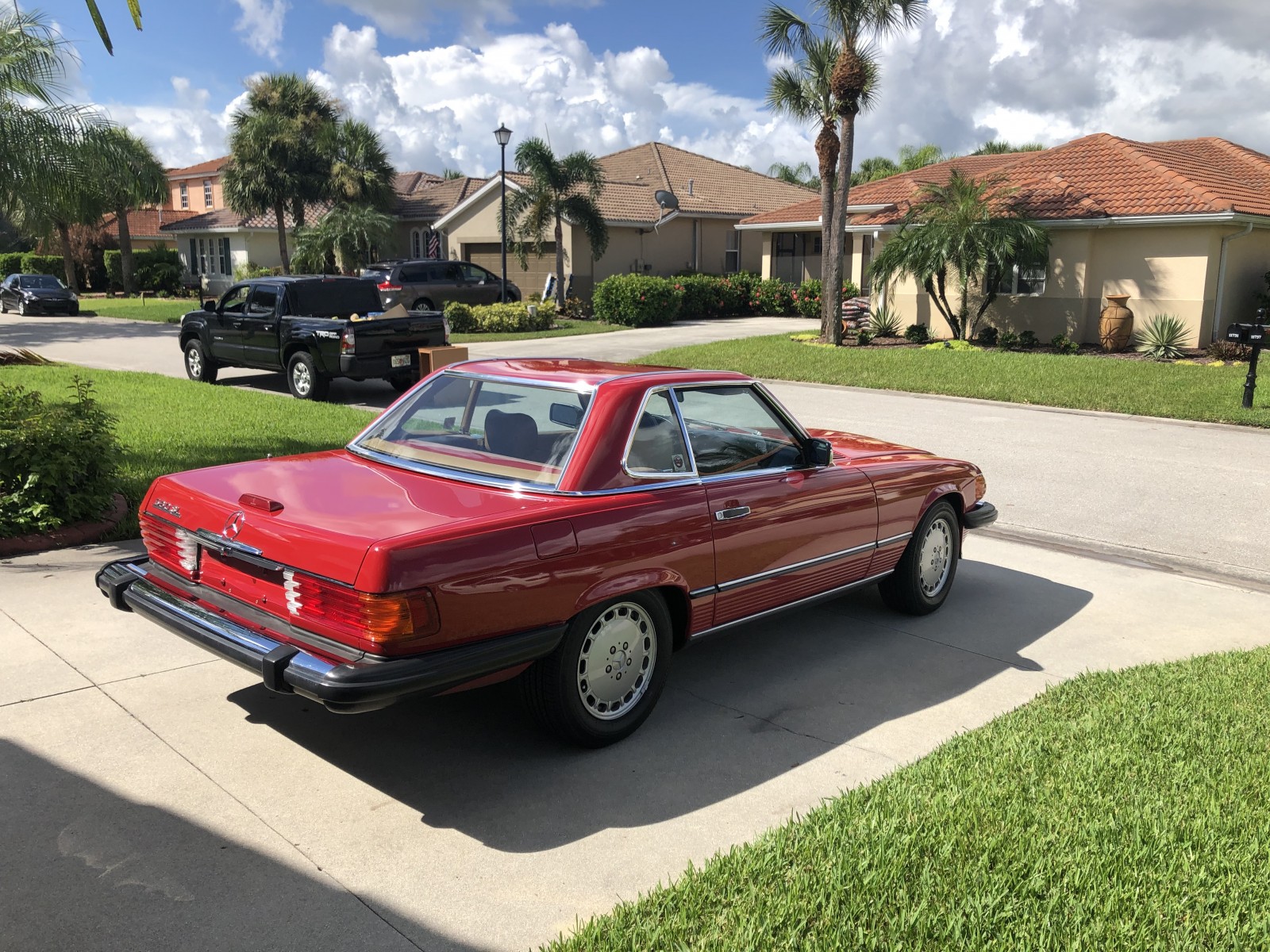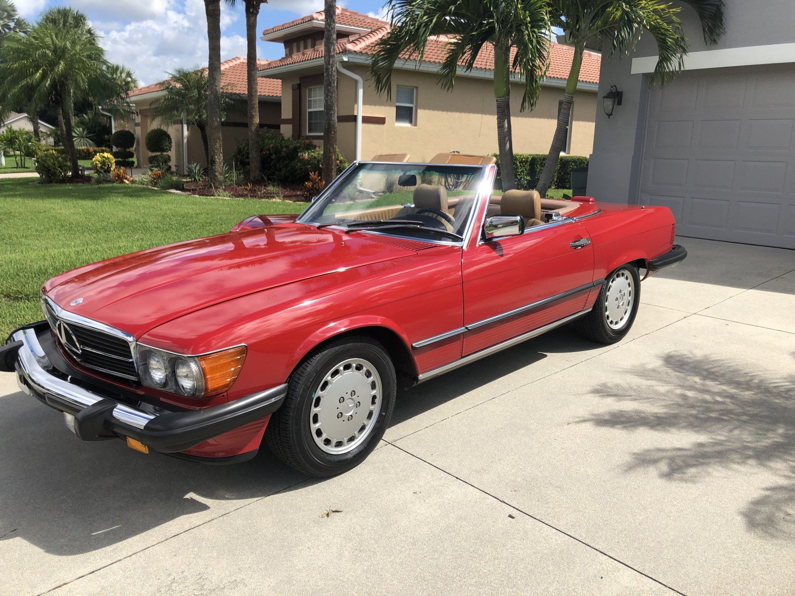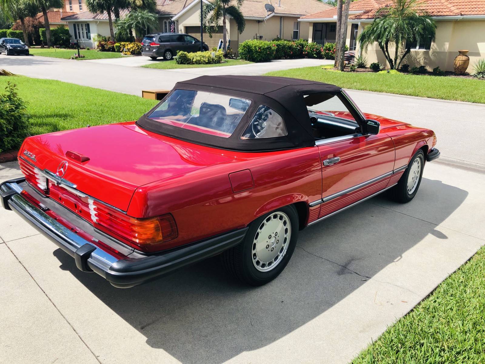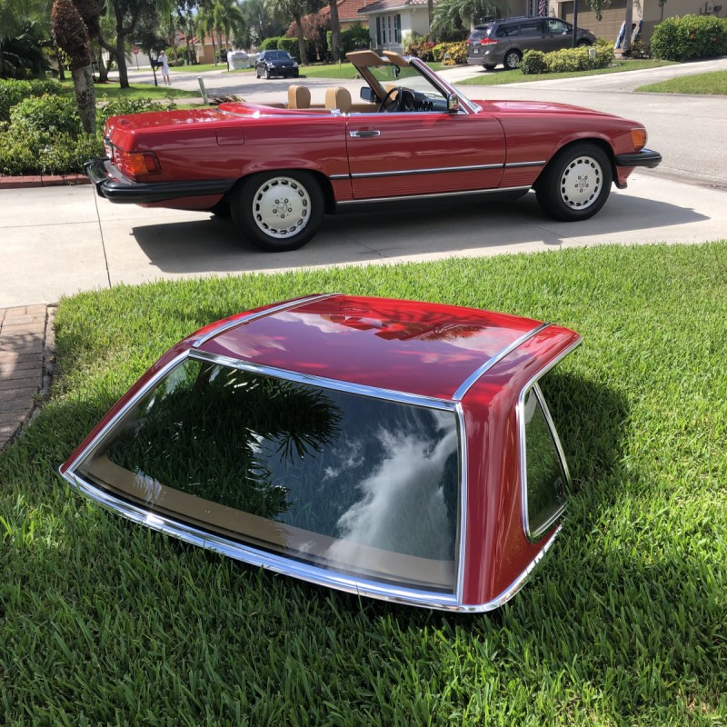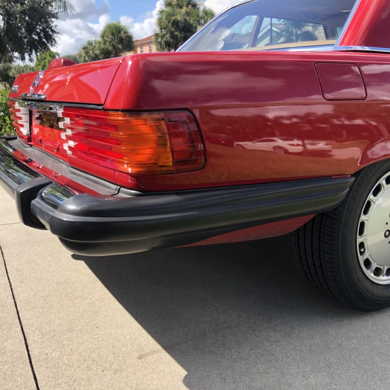 This 1988 Mercedes-Benz 560SL is finished in Signal Red over a Palomino leather interior. The car was purchased from a doctor and his wife in Sarasota, Florida in August 2018. It was meticulously maintained and I spoke with the mechanic that serviced the car and I have all the service records. Power is provided by 5.5-liter V8 paired with a four-speed automatic transmission. Maintenance in the last two years has included a transmission service and a new air filter, fuel filter, and spark plugs. Now showing 29k miles, this R107 SL is now offered with a matching factory hardtop, the factory tool roll, a car cover, manufacturer’s literature, service records, a clean Carfax report, and a clean Florida title in the seller’s name.
