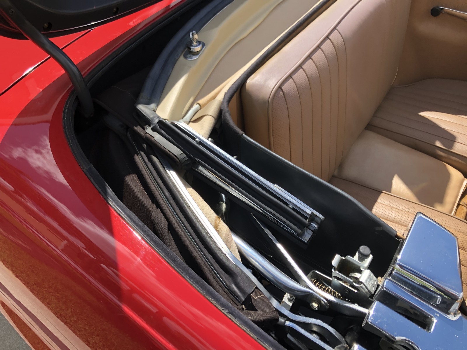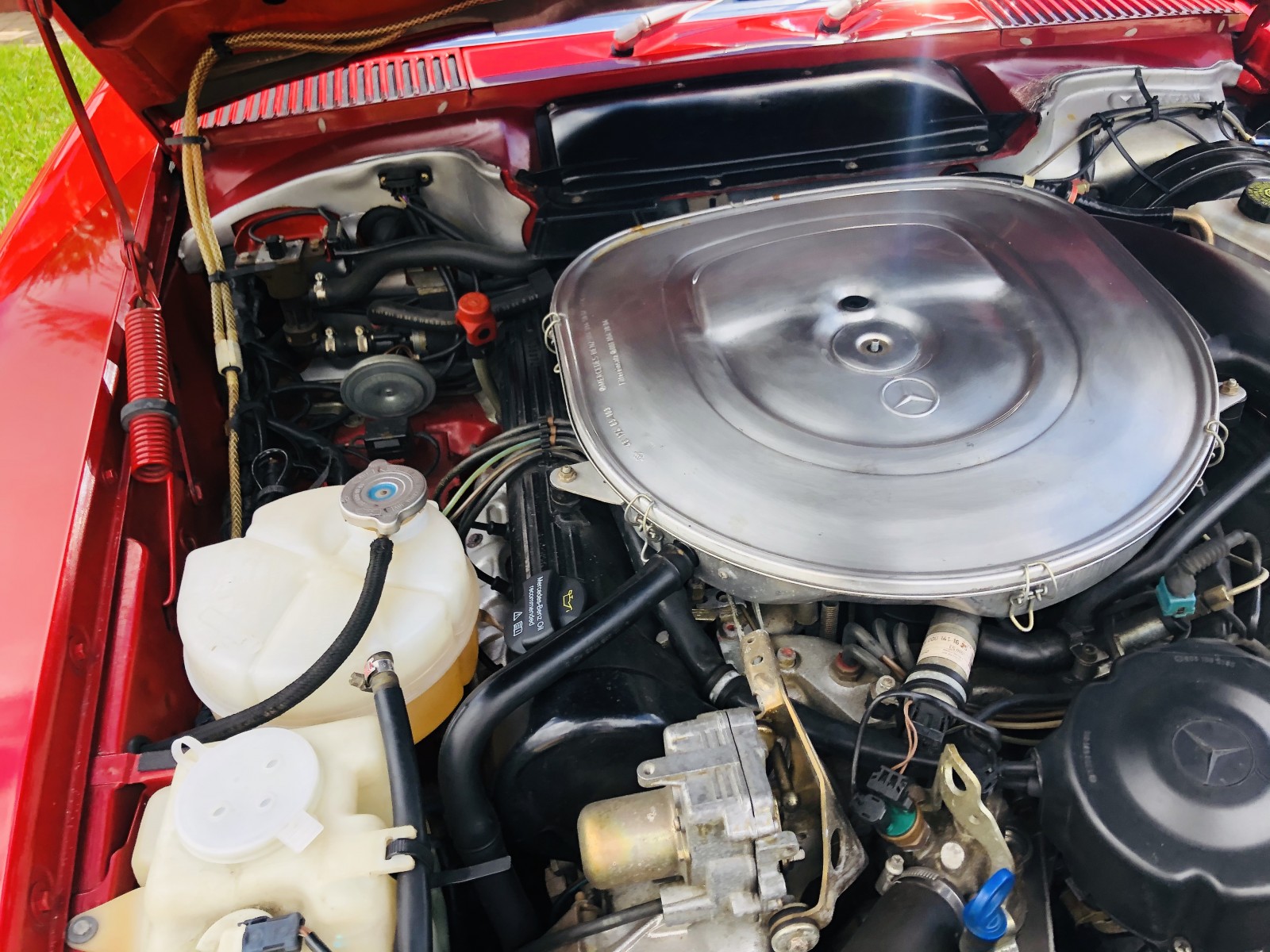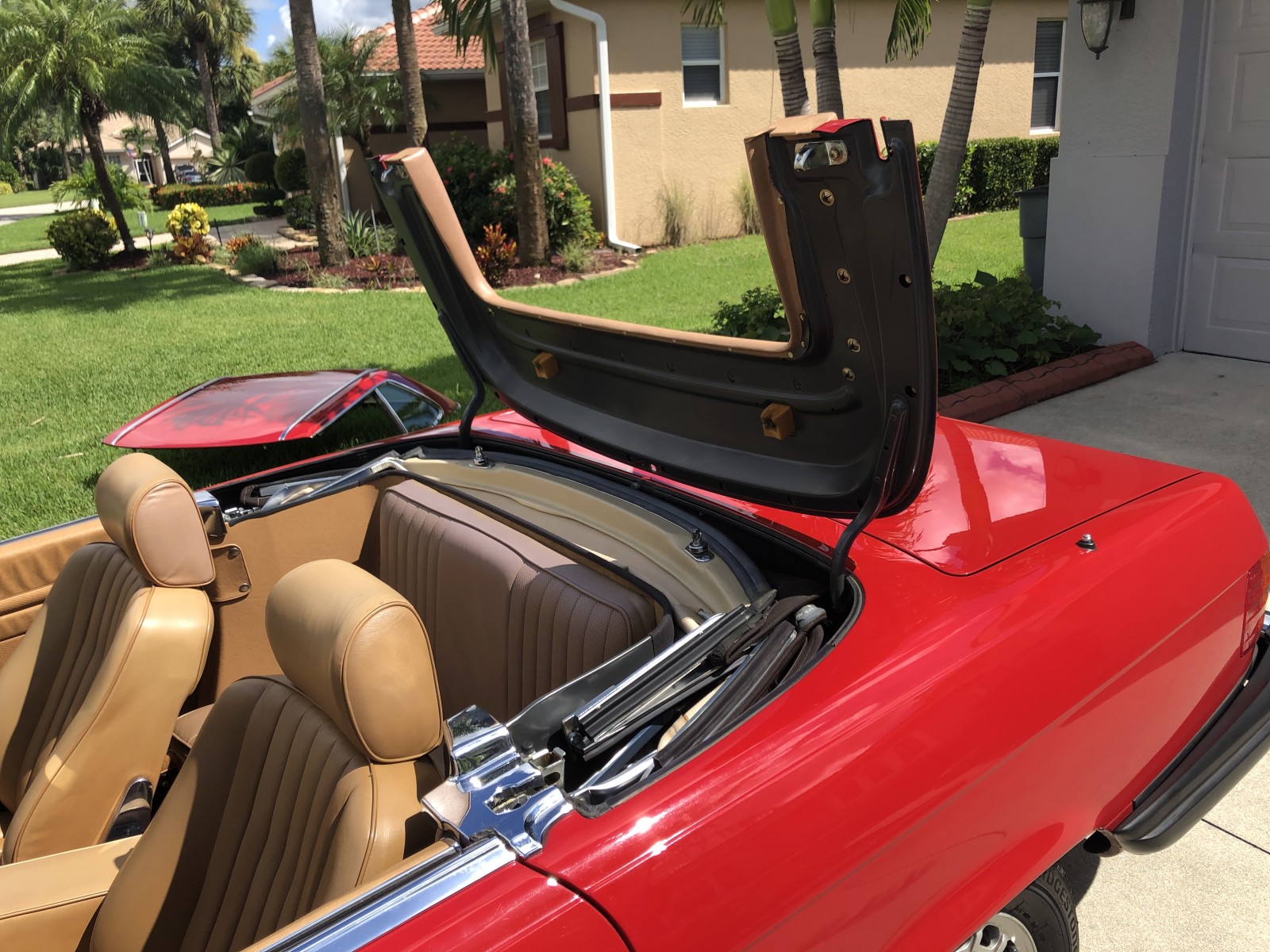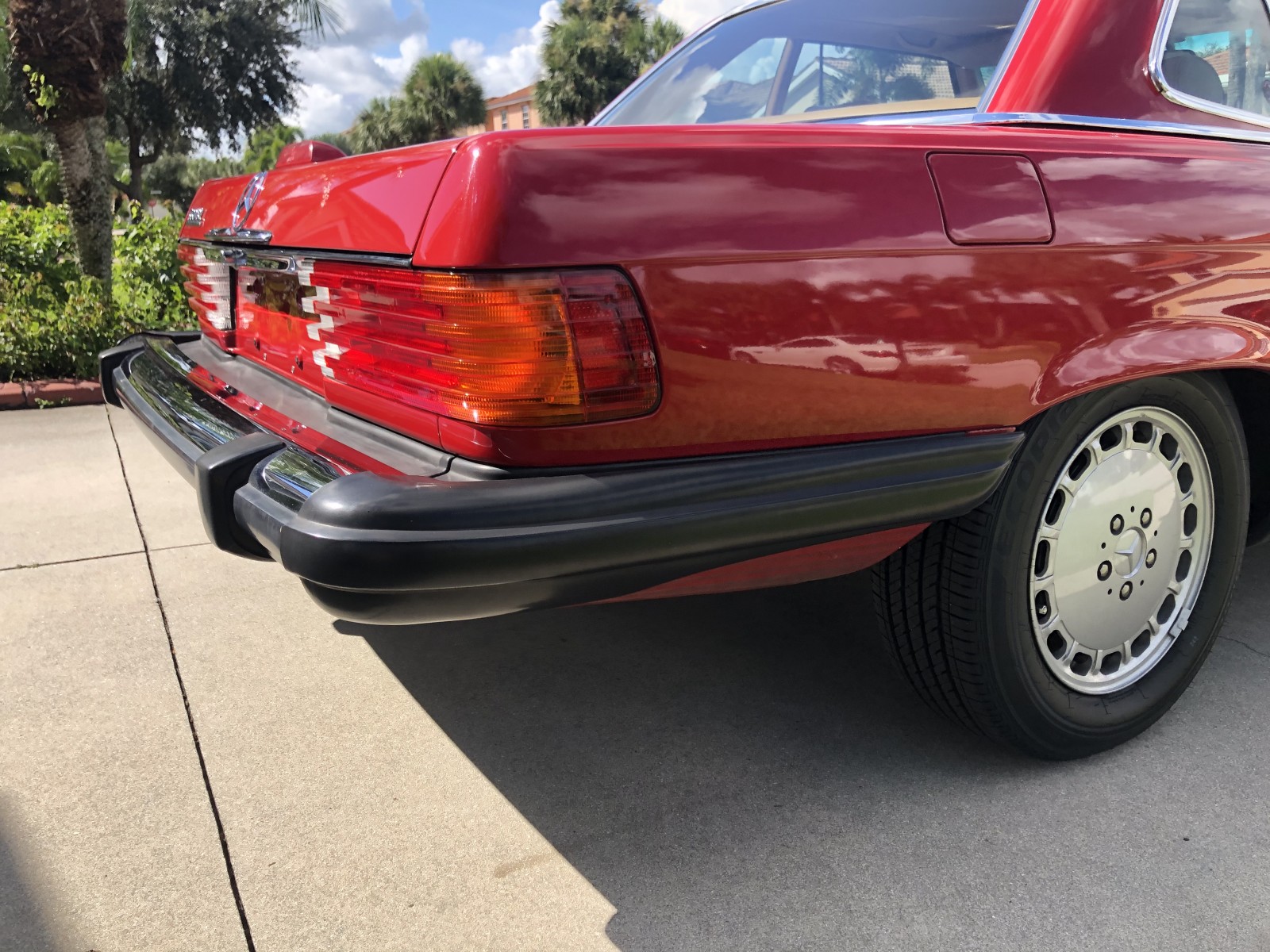 This 1988 Mercedes-Benz 560SL is finished in Signal Red over a Palomino leather interior. The car was purchased from a doctor and his wife in Sarasota, Florida in August 2018. It was meticulously maintained and I spoke with the mechanic that serviced the car and I have all the service records. Power is provided by 5.5-liter V8 paired with a four-speed automatic transmission. Maintenance in the last two years has included a transmission service and a new air filter, fuel filter, and spark plugs. Now showing 29k miles, this R107 SL is now offered with a matching factory hardtop, the factory tool roll, a car cover, manufacturer’s literature, service records, a clean Carfax report, and a clean Florida title in the seller’s name.