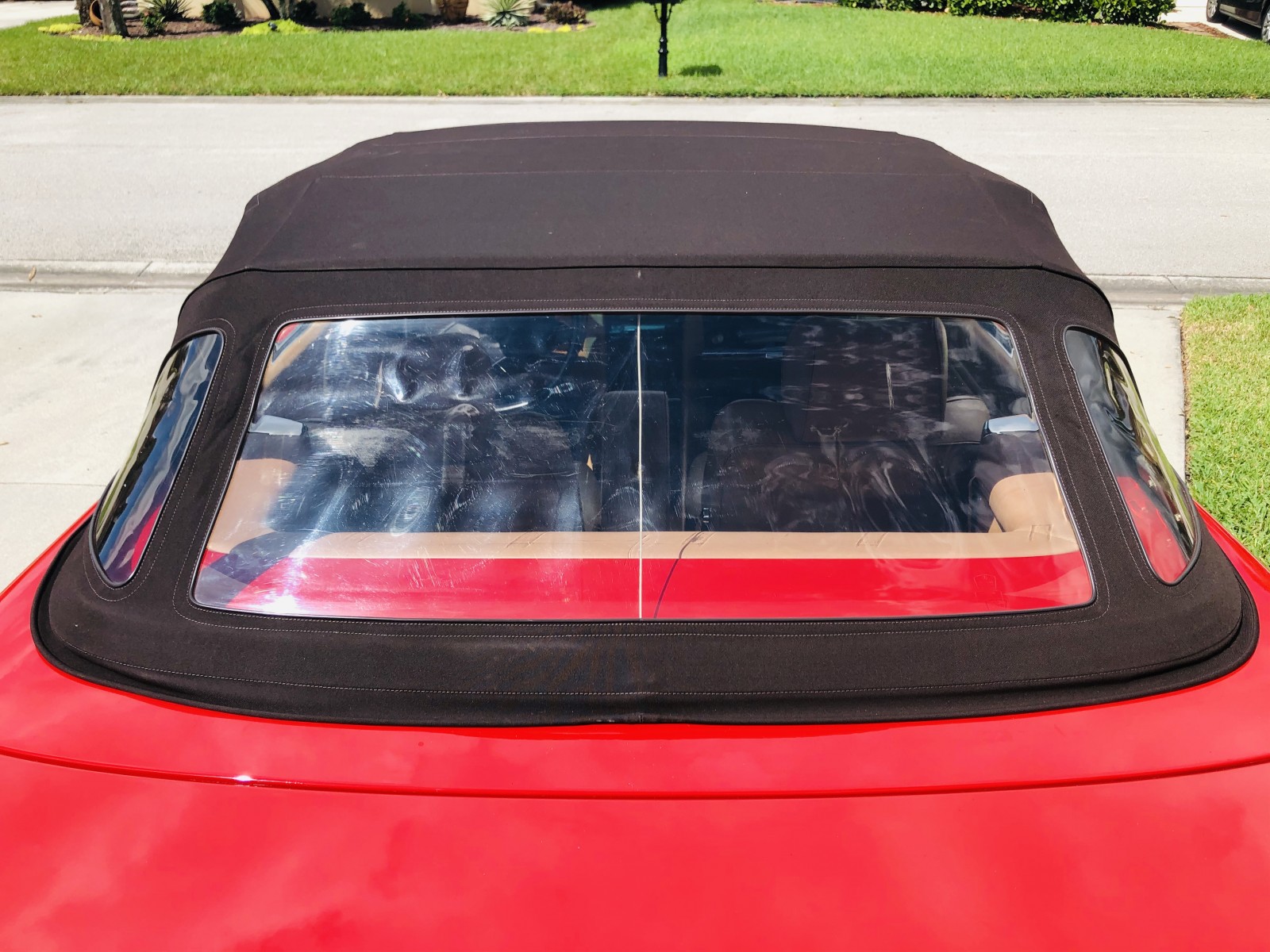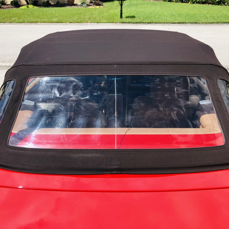 The exterior is finished in Signal Red and features a color-matched removable hardtop.