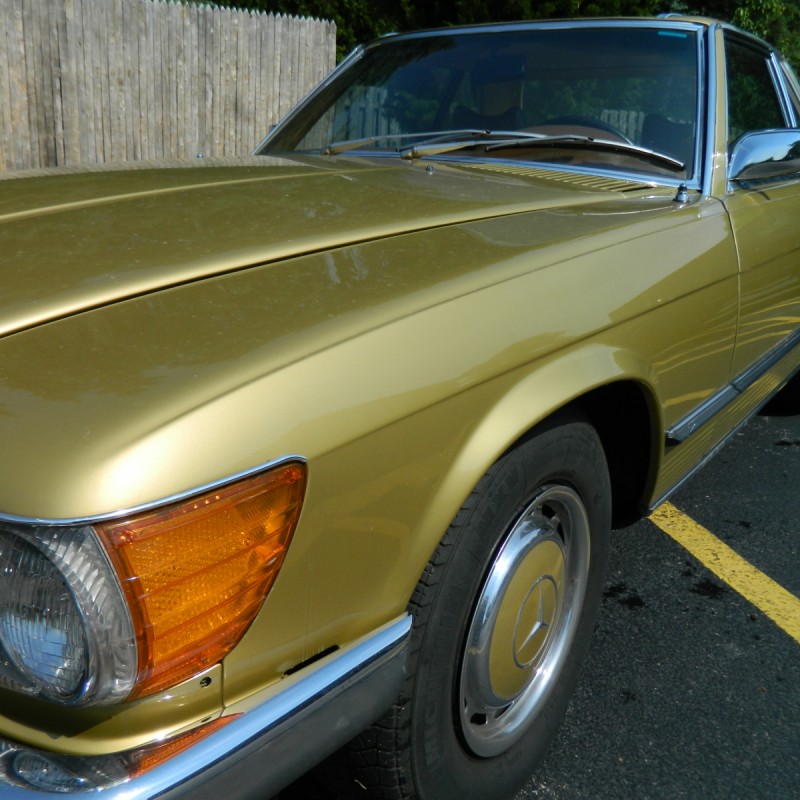 This 1973 Mercedes Benz 450SL Roadster is a gem. It's been GARAGE KEPT and it's all original....no modifications. Since we've took the vehicle on trade, we've done the following: NEW brakes all around (rotors, pads, calipers), flushed and replaces ALL fluids, NEW belts & hoses, replaced the fuel pump, NEW gaskets, and a exterior detail (buff, wet-sand, clay, wax). The chrome is in excellent condition, the under carriage is rust free, and overall the vehicle drives & runs great!