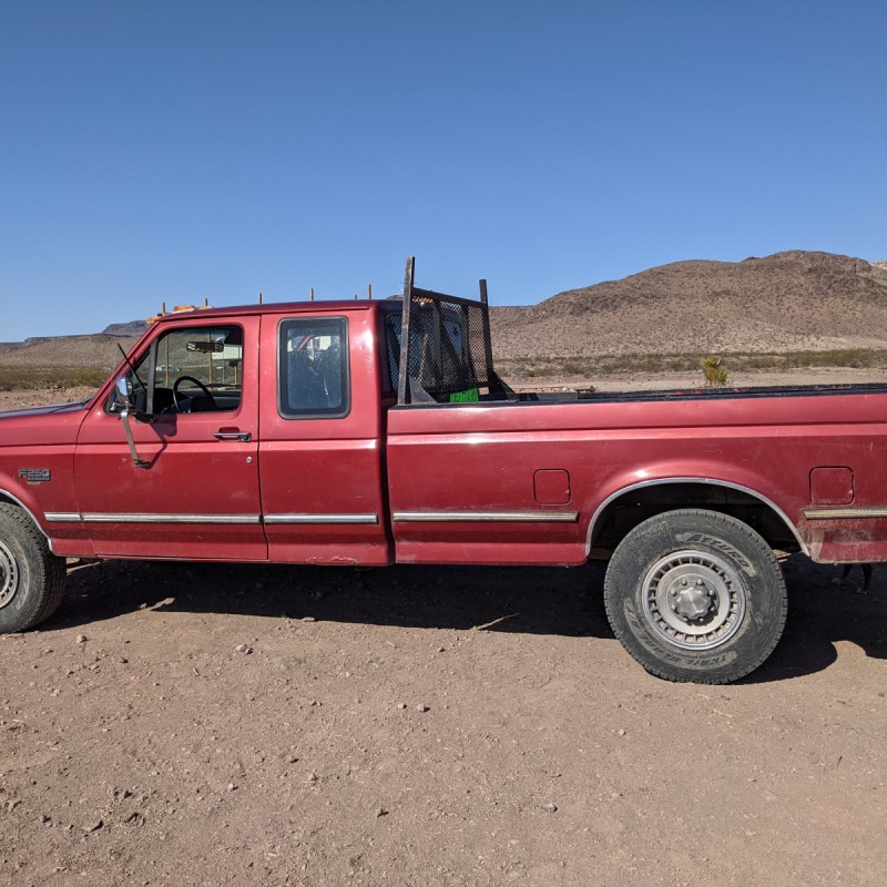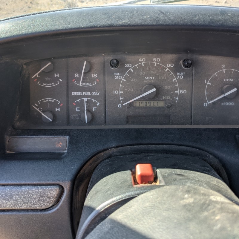 1993 Ford F-250, 5 Speed Manual, 7.3 Diesel, Factory Turbo. Bone Stock truck, No a/c can be fixed.