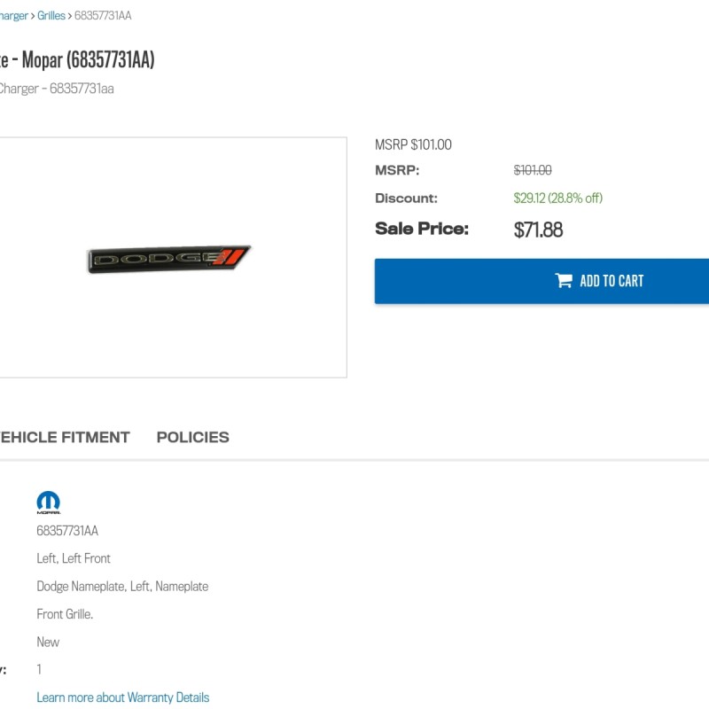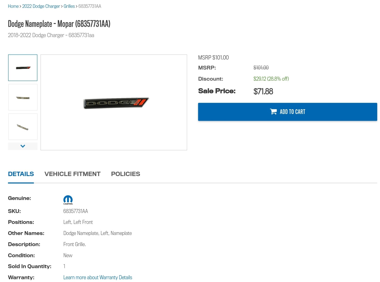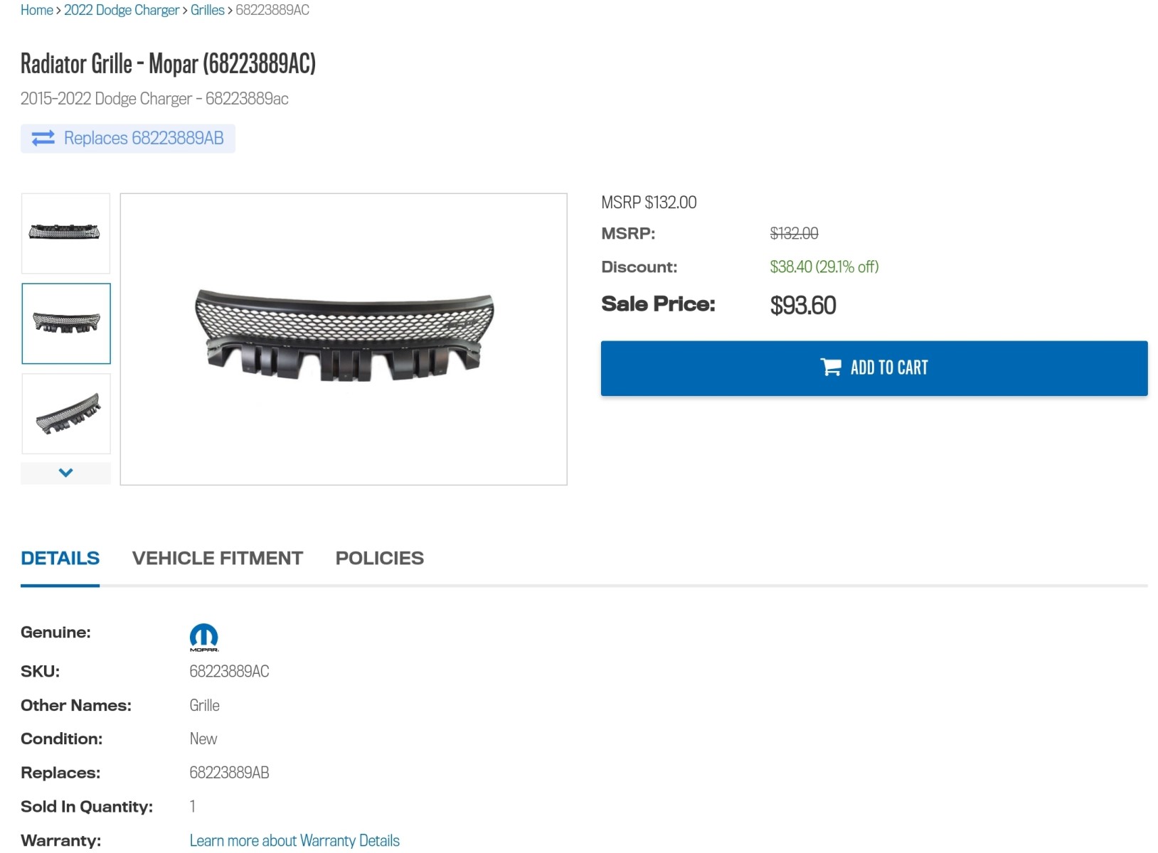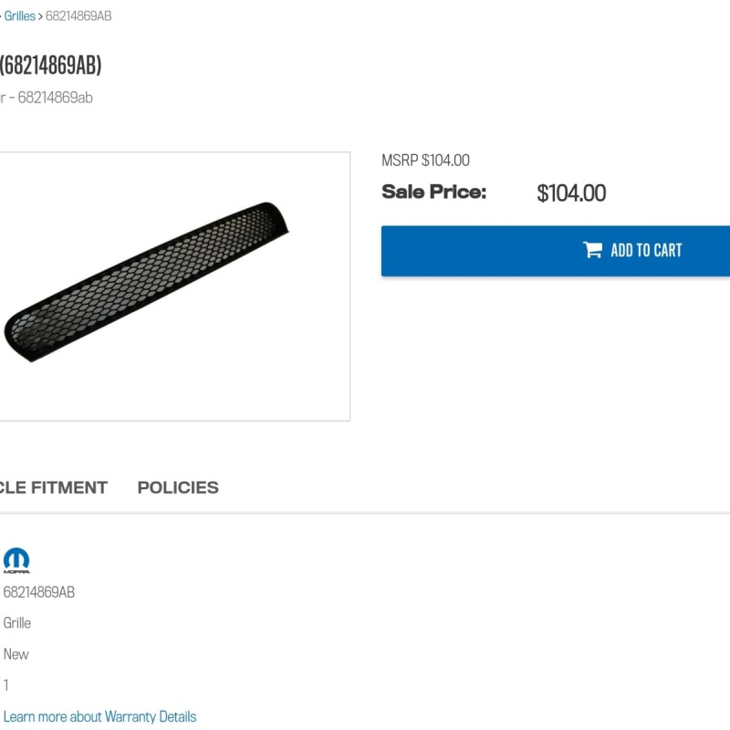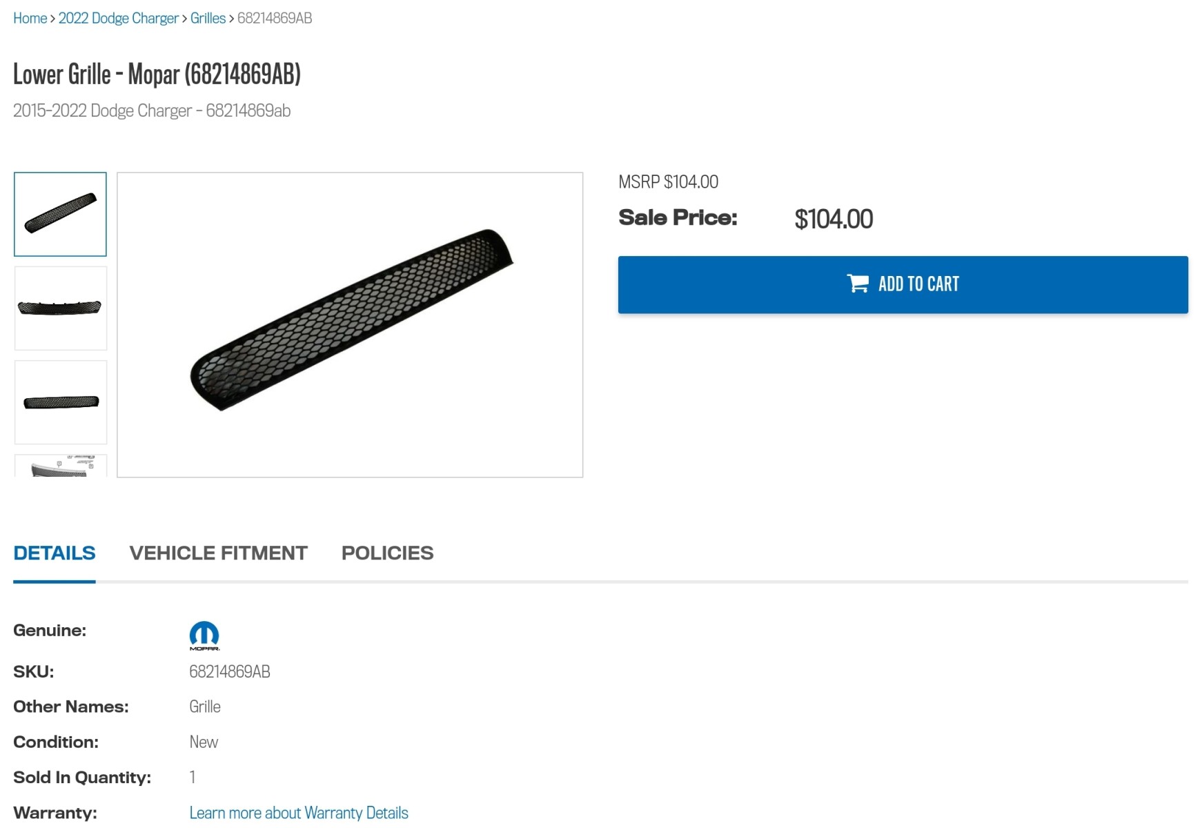 MSRP for upper grille is $132.00 (w/o Dodge emblem)