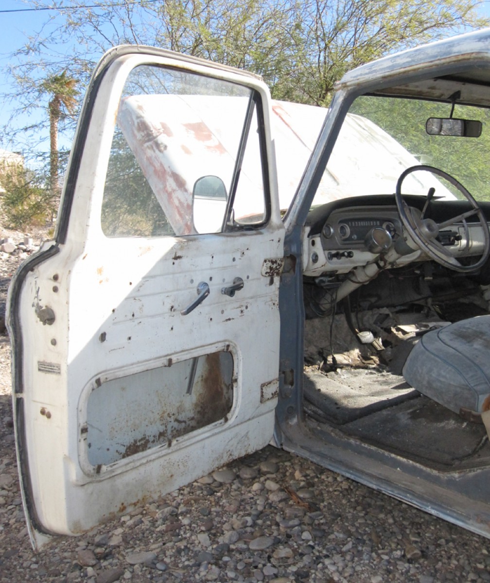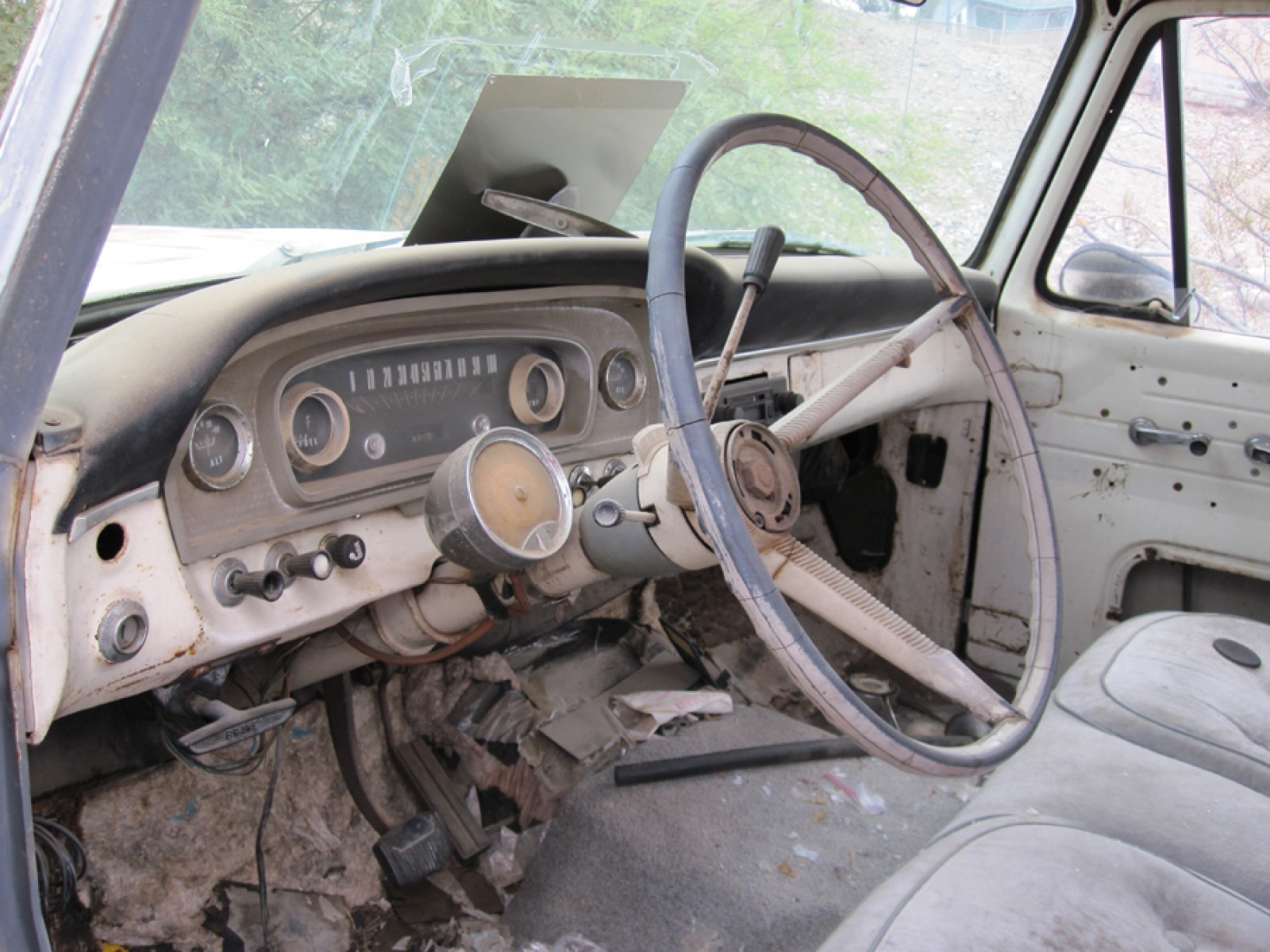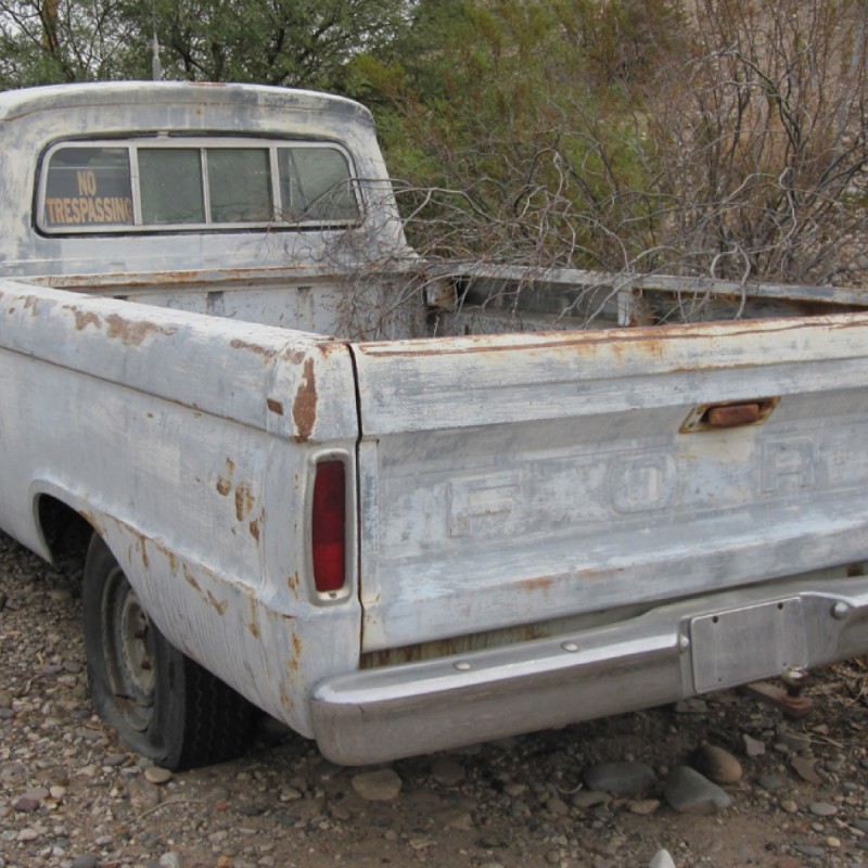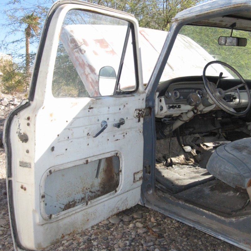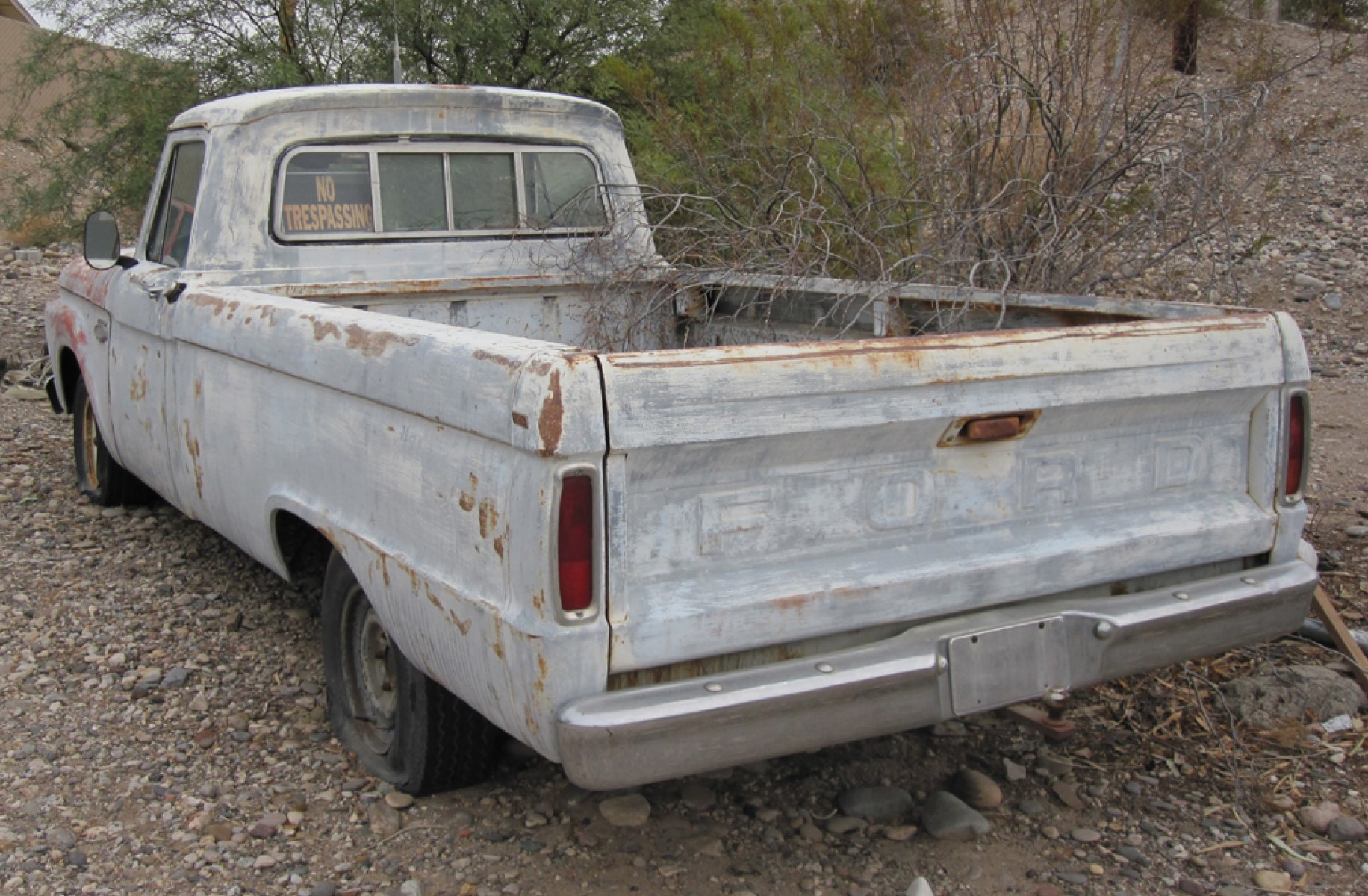 1966 Ford F-100 Custom Cab Styleside pickup with twin I-beam suspension, last year this model was manufactured. Original 352 V-8 engine, 3-speed automatic transmission with overdrive and factory towing package. Original engine and drive train. This classic truck has original oil-bath air cleaner and 2-barrel carb. Last driven in 2012, less than 3,000 miles on top-end engine rebuild. Has been stored outdoors in Arizona. New (rebuilt) alternator still in the box is included, needs battery and fan belts. Engine should run great with flush and new fluids. Lights, turn indicators and all gauges (except fuel gauge) are functional. Great project truck that needs minimal work to get on the road! Tires rotted from sitting but rims are good. Only non-original parts are rear window (was replaced with slider), seat and side mirrors, original mirrors included (see photo). Body is straight and solid, only cosmetic rust. Bed is solid but has a couple of small rust-through spots. Two body defects: small dent in hood that was popped out 30 years ago, and dent in passenger side near factory-installed in-bed tool box (see photos). This truck has been in the family since the early 1980s and was driven when carrying capacity was needed through 2012 when we bought another pickup that had A/C. Clear Arizona title. Sold as-is, buyer must transport.