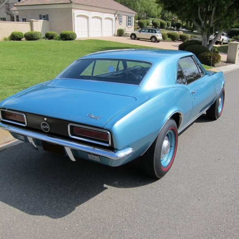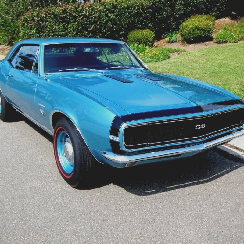 1967 Camaro RS/SS. 396/325hp engine 4 Speed Transmission. Excellent quality paint. High Performance Disc Brake Option, Emerald Turquoise, Power Steering, Comfort tilt Steering Wheel, Black Standard Interior. Factory Installed Traction Bars.