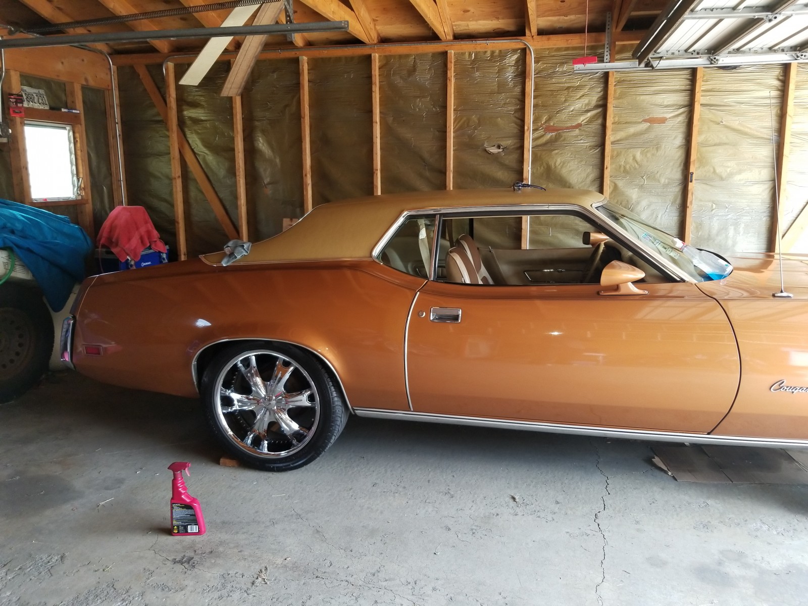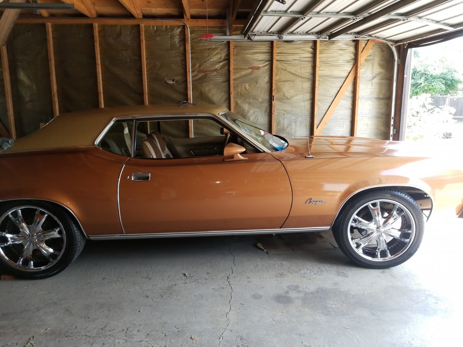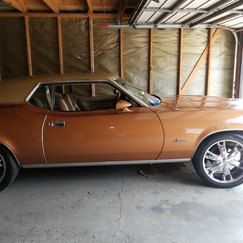 The cougar is clean needs minor body work and a repaint. It has a 351 Cleveland engine with a 770 Holly carburetor, chrome wheels, after market radio sold great! Right now having some issues with getting and keeping gas in carburetor, I think carburetor needs to be cleaned