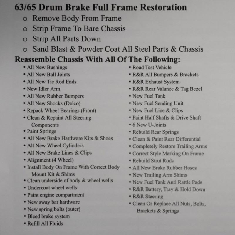 - Many New Components Including: Ball joints, bushings, fuel tank, sending unit, brake components, shocks, and much more!